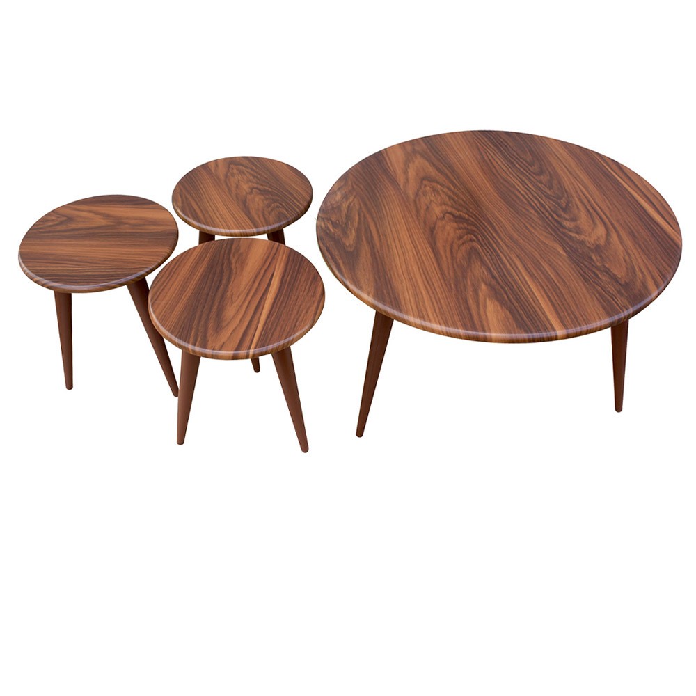 میز عسلی و جلو مبلی مدل گرد از مرغوبترین جنس ام دی اف ساخته شده و صفحه با روکش پی وی سی ۳۵صدم وکیوم شده و کاملا ضد اب می باشد پایه ها از جنس چوب و همرنگ با صفحه شده و بصورت پیچی به صفحه متصل می شود