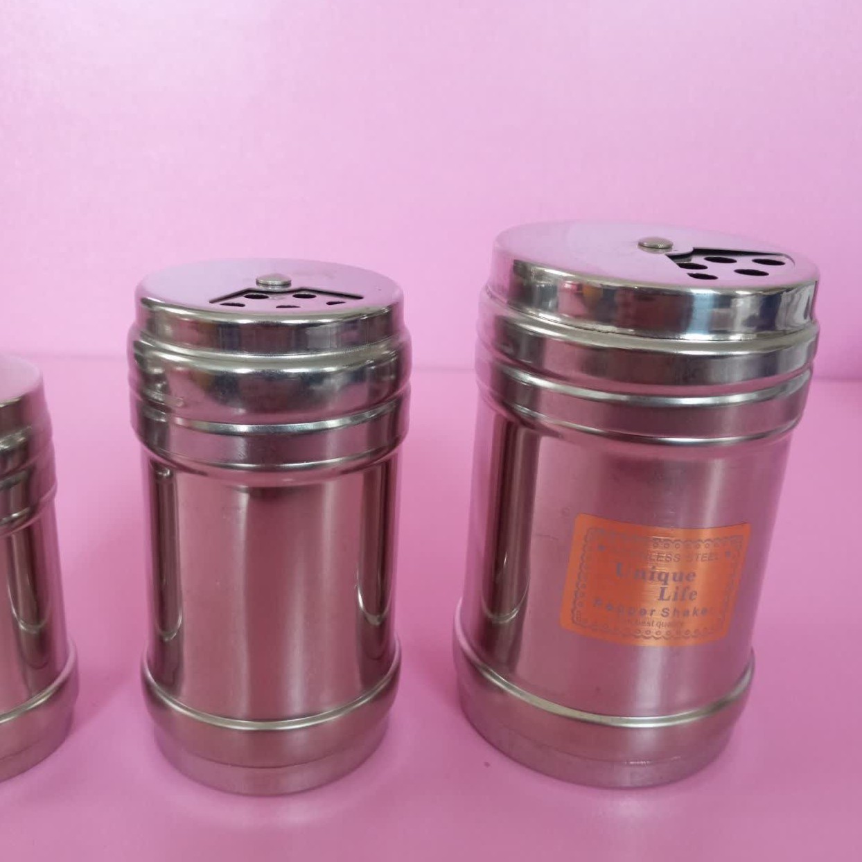 نمکدان سه عددی جنس استیل بهترین کیفیت فولاد زد زنگ از کوچک به بزرگ مارک یونیک لایف استفاده از شبکه چرخش چند منظوره به طور جداگانه کالاهای با کیفیت فولاد ضد زنگ کوچک سایز قطر ۴ در ارتفاع ۷.۵ متوسط سایز قطر ۵ در ارتفاع ۹.۵ بزرگ سایز قطر ۶ در ارتفاع ۱۰ سانتی متر
