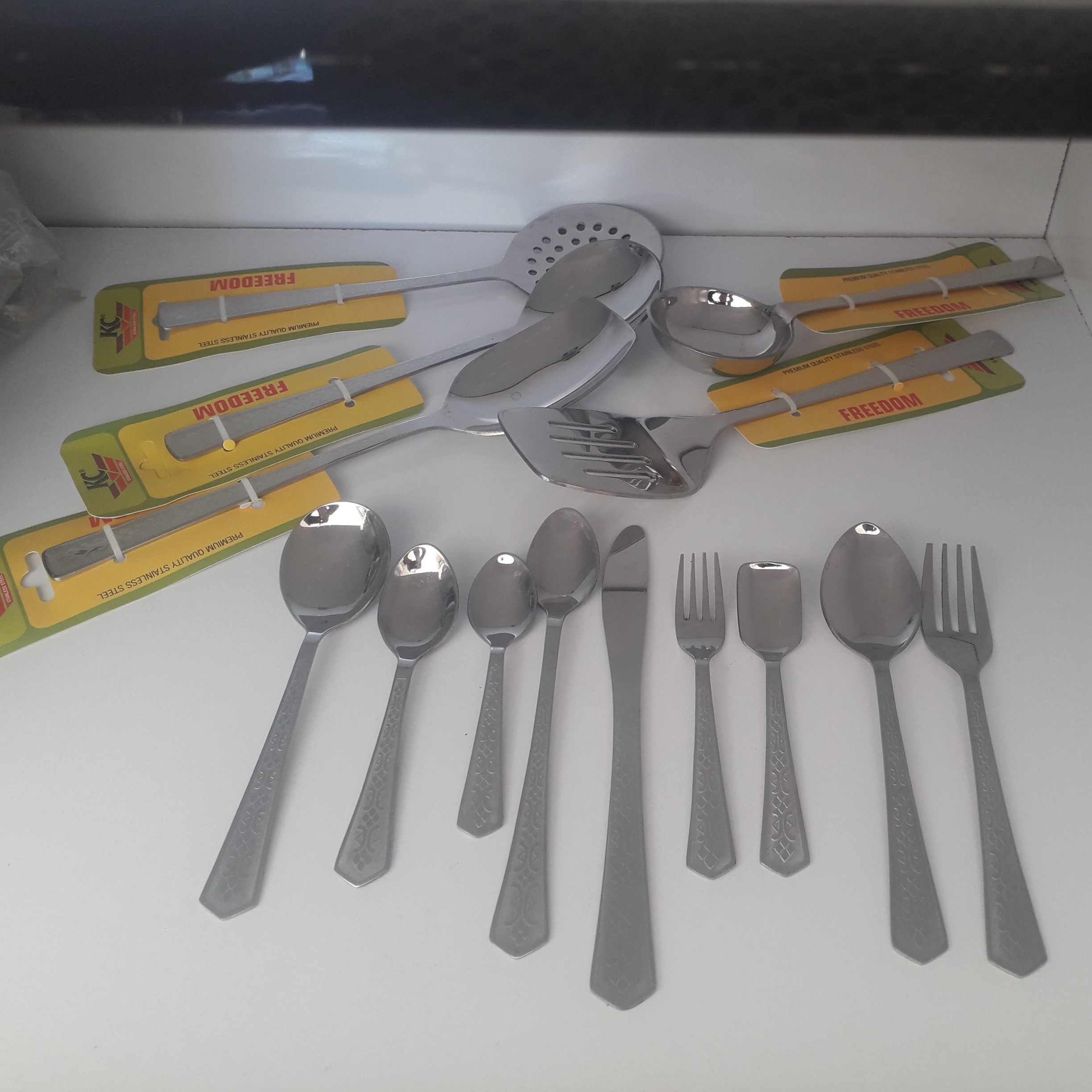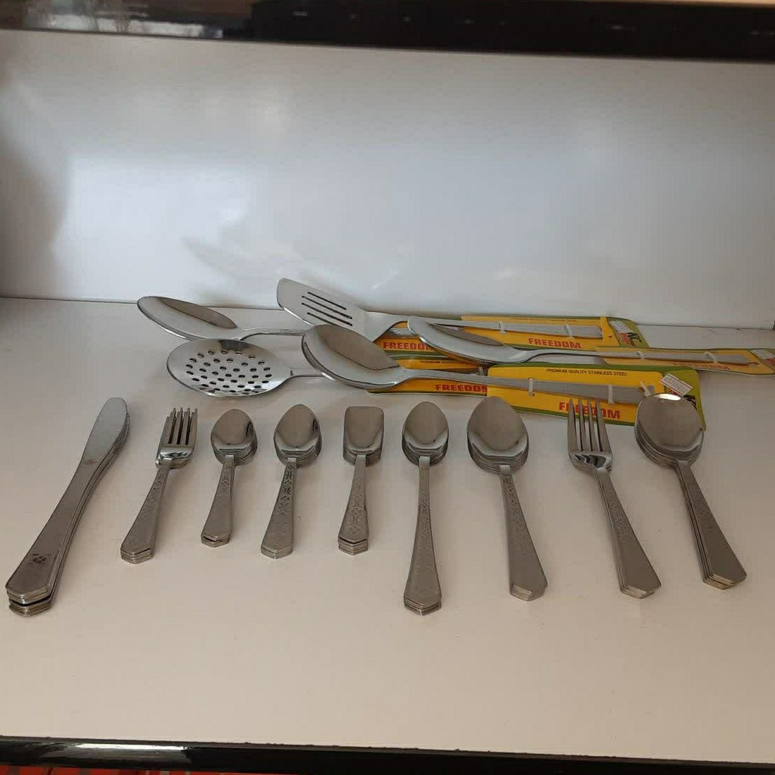 قبل از خرید هماهنگ کنید قاشق غذا: 12عدد چنگال غذا: 12عدد چنگال میوه: 12عدد قاشق شربت:12عدد قاشق بستنی:12عدد قاشق مربا:12عدد قاشق چای:12 عدد قاشق سوپ:12عدد کارد کره و میوه: 12عدد سرویس کفگیر ملاقه:6عدد