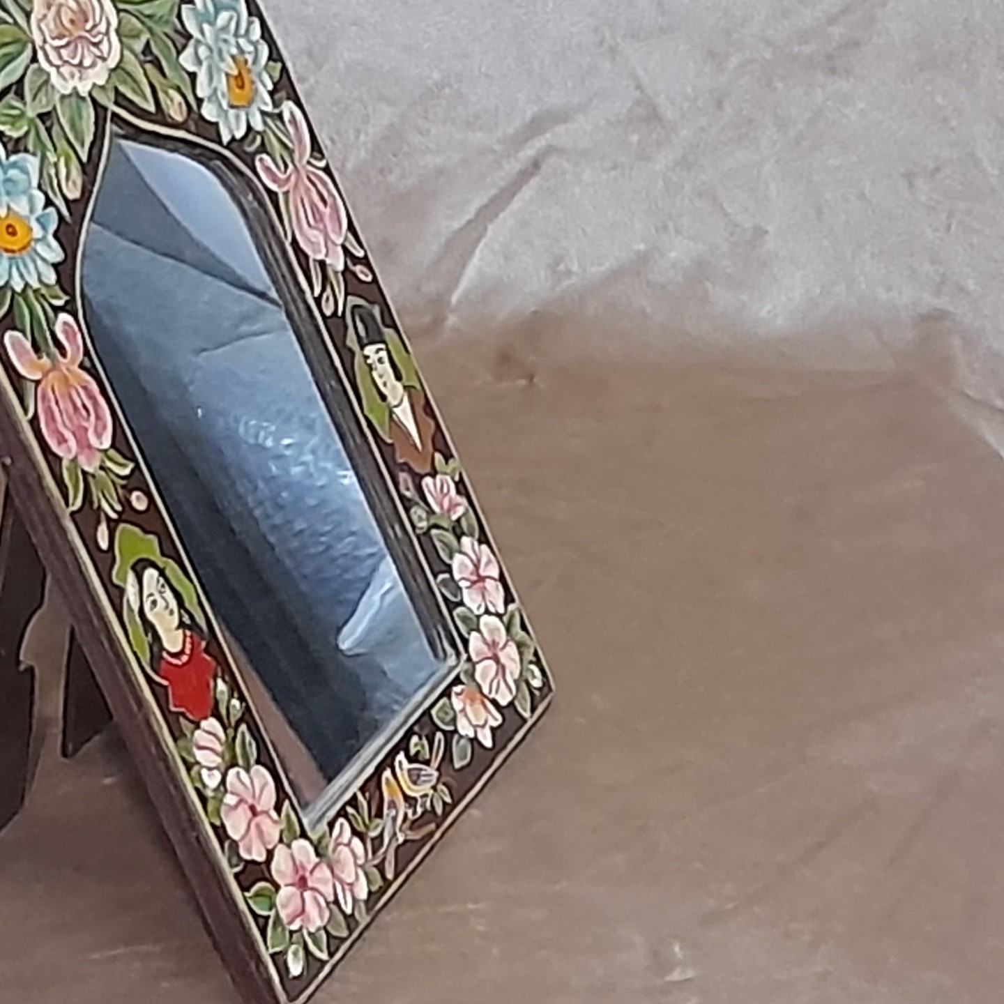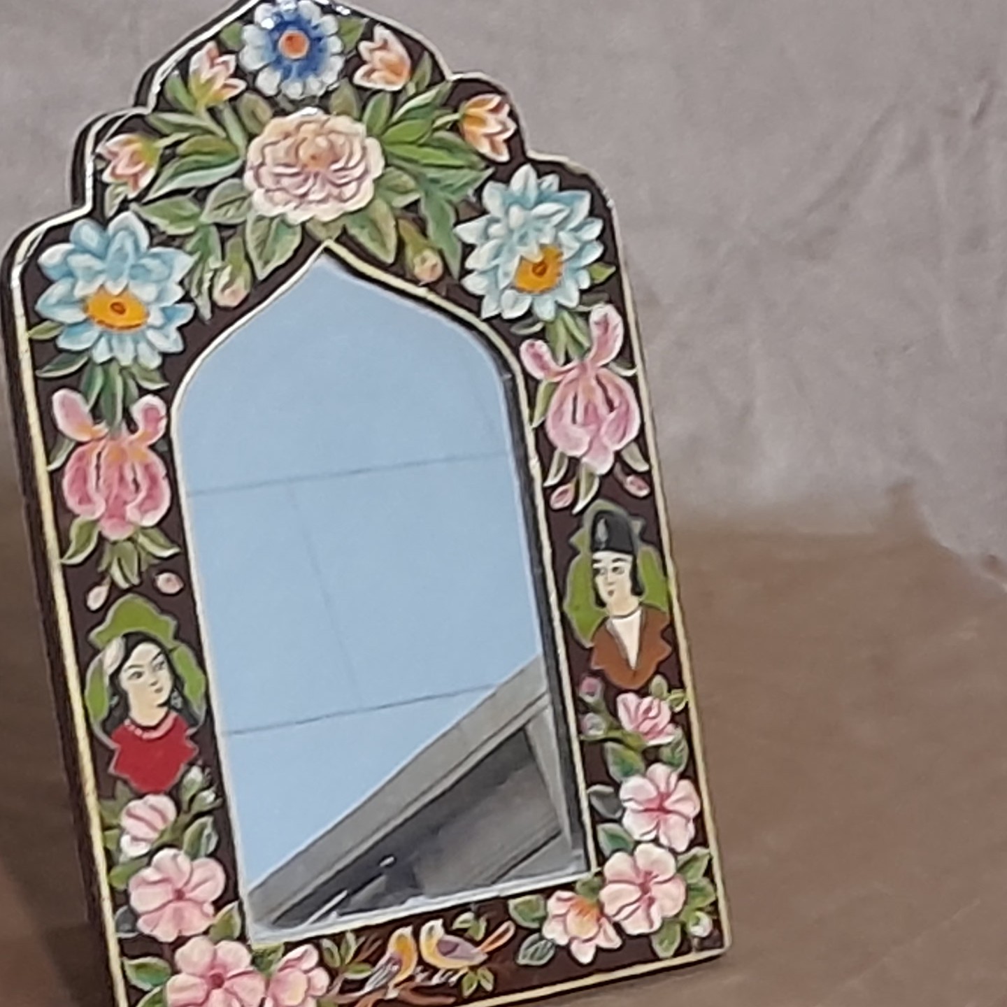 آینه پاپیه ماشه ایستاده گل ومرغ با رنگهای معدنی وگیاهی باطول 15 سانتی متر وارتفاع 25 سانتی متر مبلمونسرا مدل 262236