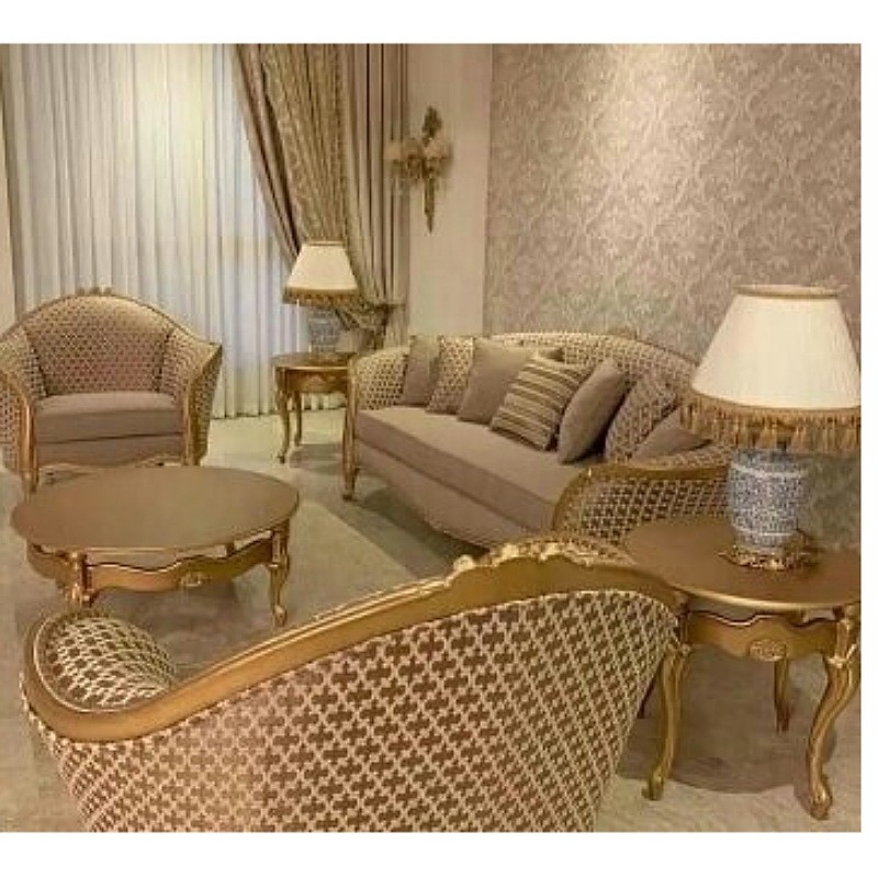 ارسال با باربری مبل کلاسیک مدل سه گل نشیمن هشت نفره باترکیب دوعدد کاناپه سه نفره ودوعدد مبل تک ومیزجلومبلی وعسلی جنس چوب راش گرجستان پارچه بدنه سری نانو وارداتی پارچه طرح دار شانل فوم سرد13سانت شرکتی اسفنج ویژه جاجرود35کیلو
