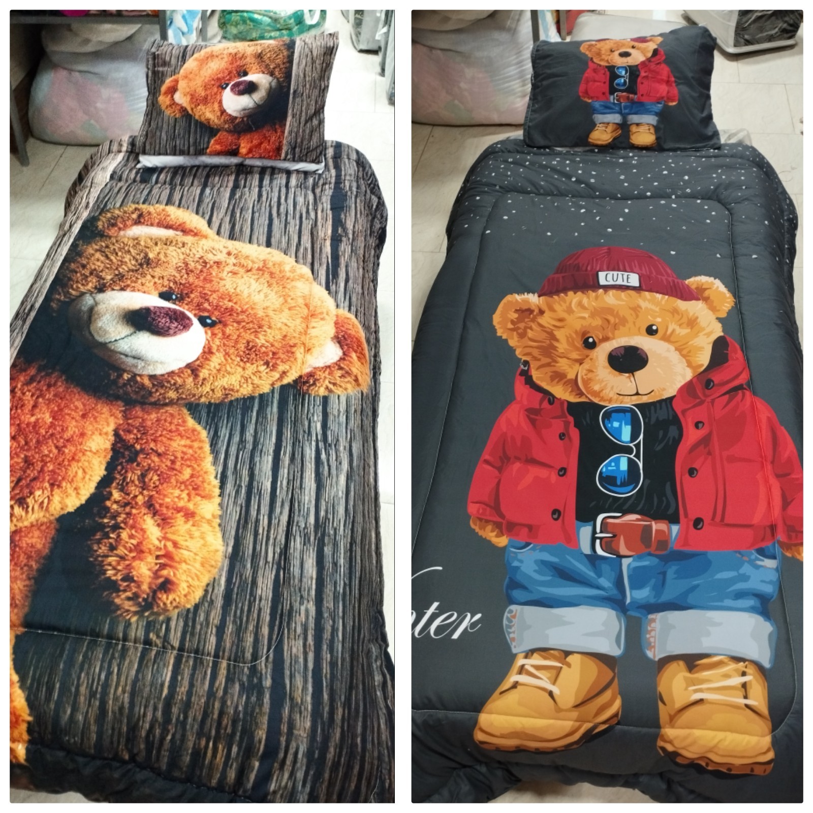 فروش قسطی چاپ سفارشی با سلیقه مشتری سرویس روتختی یک نفره چاپ سه بعدی 4تیکه شامل دو عدد روبالشت ملحفه کشدار لحاف دو رو و ضخیم با ضمانت رنگ و شستشو پارچه ضمانتی ارسال به تمام نقاط کشور