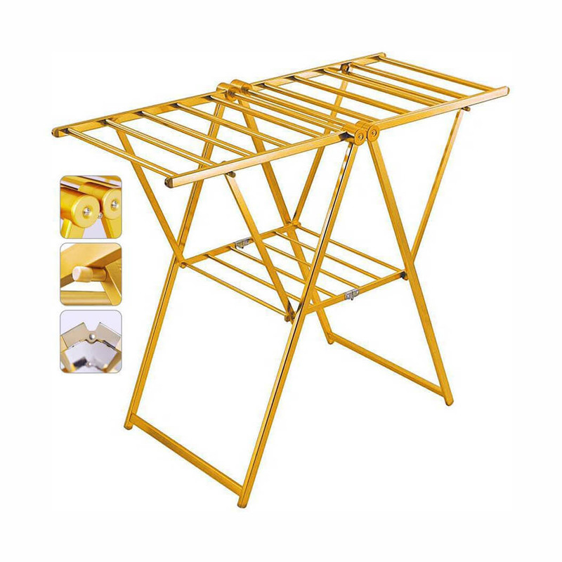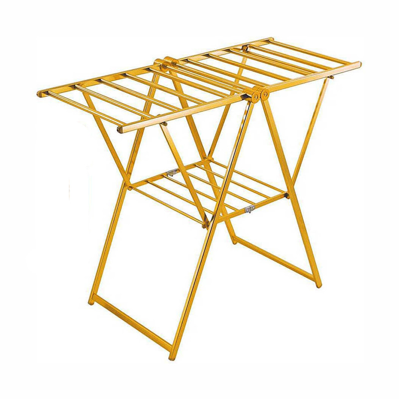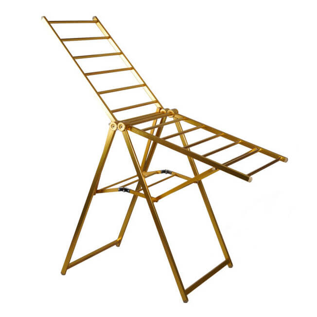 اگر بدنبال یک بند رخت محکم با تحمل وزن زیاد برای خشک کردن پالتو، لباس، کفش، پتو و ... هستید و اگر یکبار برای همیشه میخواهید یک بند رخت با طول عمر بالا و کیفیت بینظیر داشته باشید قطعا ما به شما بند رخت رزنبرگ را پیشنهاد میکنیم. این بند رخت از بهترین مواد اولیه و مقاومترین استیل ضدزنگ ساخته شده و حتی کوچکترین جزییات آن هم ضدزنگ هستند. عموما اکثر بند رختها پس از مدتی از ناحیه پیچ و لولا دچار زنگزدگی میشوند اما این بند رخت به هیچ عن زنگ نزده و تحمل وزن بسیار بالایی را دارد. آبکاری طلایی و برنز آن در بهترین کارخانههای دنیا انجام شده و بههیچ عن کمرنگ نشده و تغییر رنگ نخواهد داد. بند رخت پرنس مدل ARMANI که با قابلیت جمع شدن (تاشو)، ازجمله بهترین وسایل برای خشک کردن لباسها در خانه محسوب میشود. با وجود این بند رخت قادر هستید، در فضای داخلی اتاقها حدود 20 متر طول رخت آویز جهت خشک کردن لباسهایتان در اختیار داشته باشید. بعد از باز کردن بند رخت 20 میلهی فلزی و محکم را در اختیار دارید که تحمل بیش از 70 کیلوگرم وزن را دارند. طول کلی بند رخت بعد از بازکردن به 150 سانتیمتر میرسد و درنتیجه فضای کافی برای خشک کردن لباسهای مختلف را برایتان فراهم میکند. ناگفته نماند که میلههایی که در قسمت پایین بند رخت مشاهده میکنید، برای جوراب، لباسزیر، دستمالهای نظافتی و... قابلاستفاده هستند. از دیگر ویژگیهای این بند رخت زیبا و محکم وزن بسیار کم آن است و همچنین حجم بسیار کم این بند رخت در هنگام جمعشدن به شما این امکان را میبخشد که آن را درهر نقطهای از منزل به آسانی نگهداری کنید.