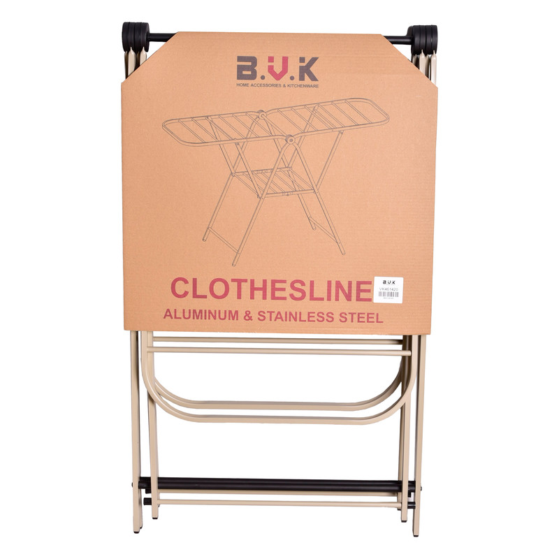 امروزه با توجه به فضای کوچک خانه ها و لزوم خشک کردن لباس ها و دستمال های نظافتی خانه، فضایی برای نصب بند های ثابت قدیمی نیست“بند رخت بی وی کی با قابلیت جمع شدن محصولی کاربردی برای تمام خانه هاست. این محصول در حالت جمع شده کمترین فضا را اشغال می کند. به راحتی باز می شود و دارای 22 میله برای پهن کردن لباس در اختیار شما قرار می دهد.جنس این محصول آلومینیوم- استیل می باشد.