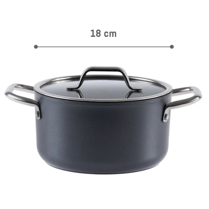 قابلمه حرفهای تیتانیومی - آنتراسیت - ۱۸ سانتیمتر این قابلمه نچسب و نچسب، غذاهای شما را به کمال میپزد، گرما را حفظ میکند و تمیز کردن آن آسان است. این قابلمه با دوام عالی و استفاده طولانی مدت، نقطه تلاقی طعم و سلامتی است. با ارائه یک تجربه آشپزی طبیعی و سالم، به آشپزخانه شما ارزش میبخشد.