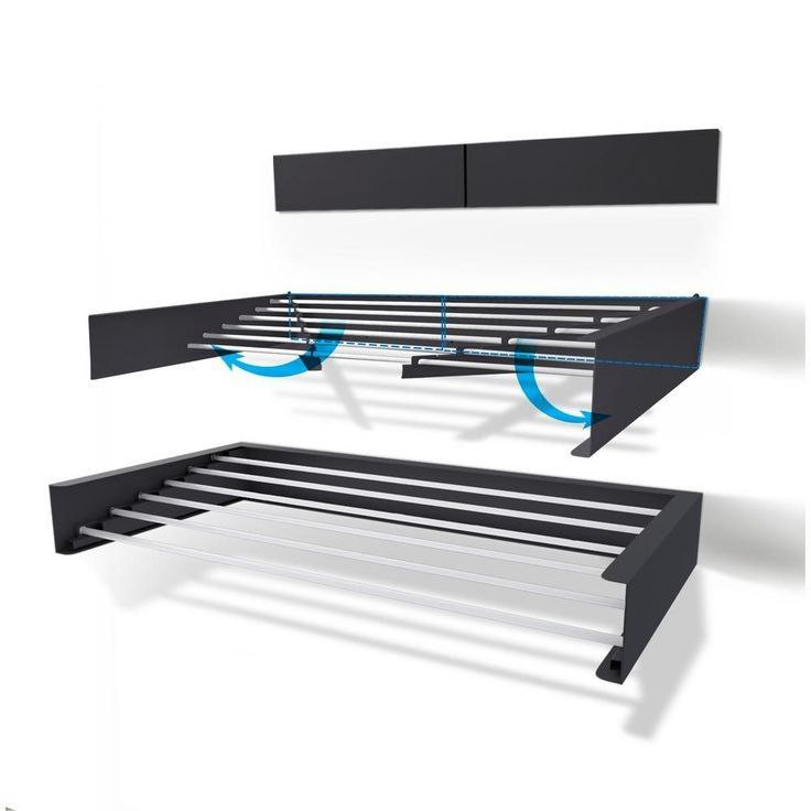 رخت آویز دیواری تاشو محصولی از شرکت نوین ماوا ایرانیان است بسیار پر کاربردکه امروزه در زندگی های آپارتمان نشینی وباکمبودفضا جهت خشک کردن لباس ها وسیله ای ضروری برای خانم های خانه دارمیباشددر طراحی این محصول مواردی از قبیل اشغال کردن فضای بسیار کم و نصب بر روی دیواردرنظرگرفته شده است این رخت آویز به صورت تاشو عمل می کند باباز شدن درب های جانبی آن می توان رگال های آن را که بر روی دو پایه متقارن بصورت مکانیزمی متحرک به سمت بیرون باز می شود را به بیرون باز نمودو رخت آویز را آماده ی پهن کردن لباس ها نمودومجددا پس از اتمام کار خشک کردن لباس ها دوباره به حالت اولیه ی خود جمع می شود این رخت آویز برای تمام فضاها در آپارتمان یا خانه های ویلایی قابل استفاده میباشدازجمله،بالکن،تراس،حمام سرویس بهداشتی ، حیاط، راه رو و اتاق خواب و حتی پذیرایی نصب شود. این محصول باکیفیت درجه یک می باشدوبسیار کاربردی است.