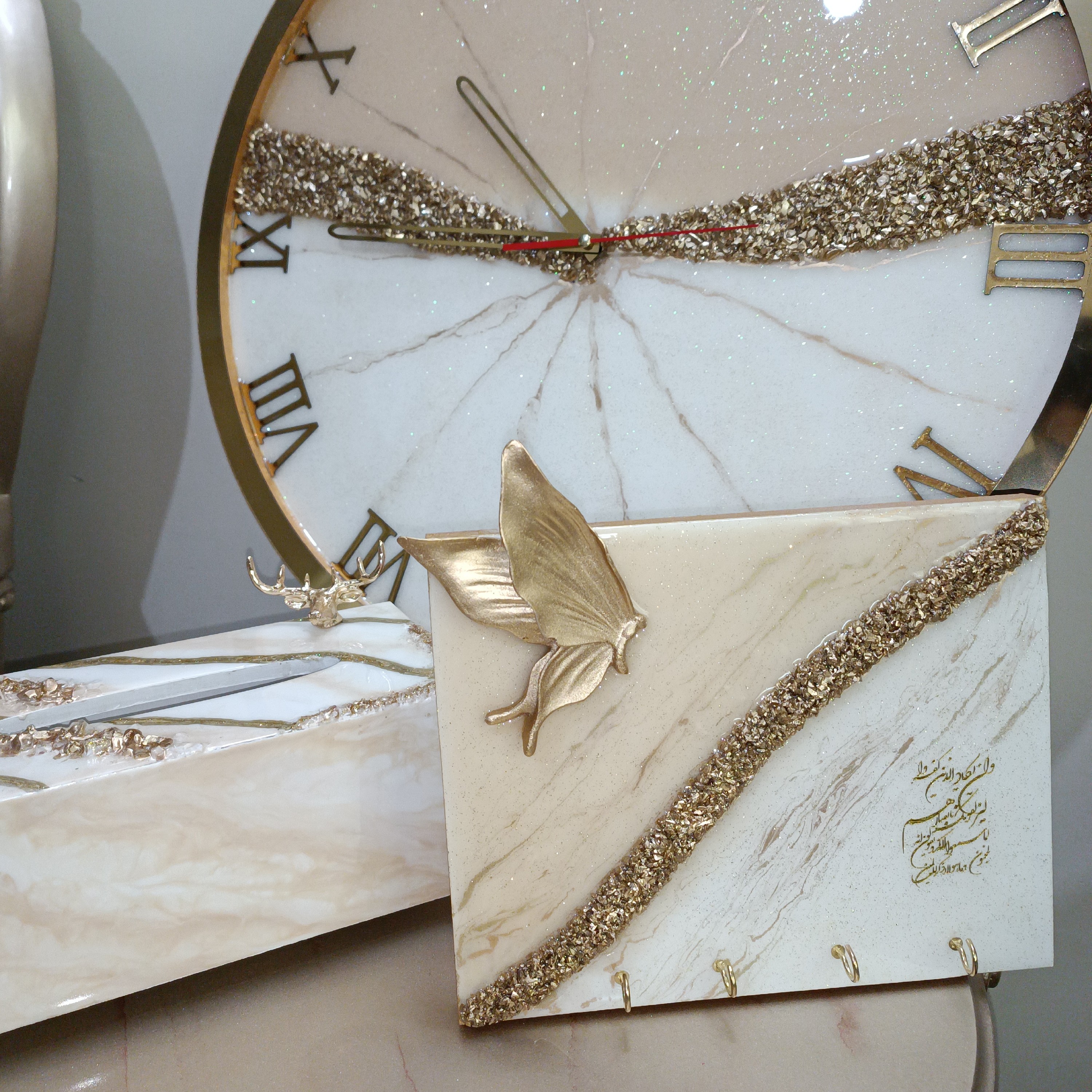 ساعت رزینی دولایه کار شده پراز شاین و زیبا . قطر 50 سانت از قطر 40 تا 70 سانت قابل اجراست . رنگ قابل تغییر است. رینگ دور و اعداد و عقربه ها مولتی استایل هستن . با خرید ساعت رزینی یه ساعتی دارید که تو هیچ مغازه ایی فروخته نمیشه و خاصه خونه شماست