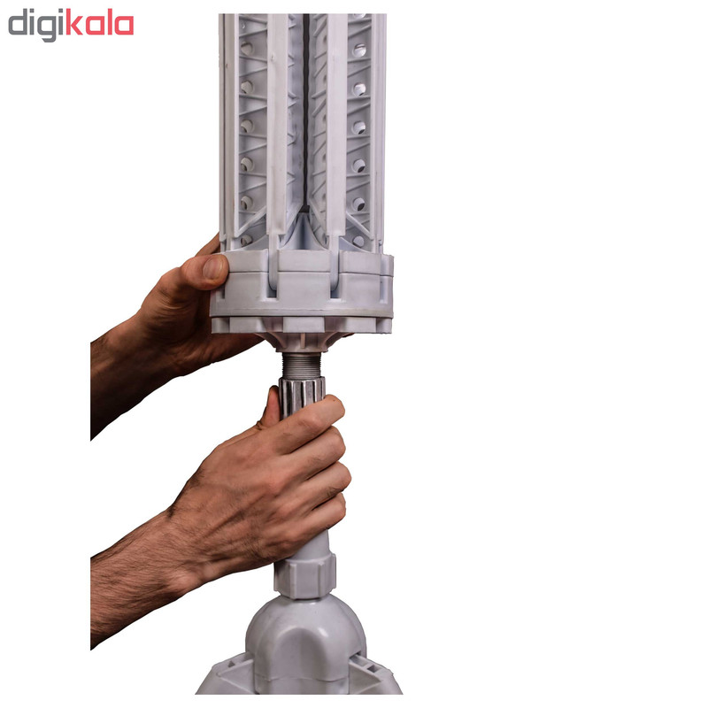 ظرفیت تحمل لباس تا ۵ کیلوگرم جنس شاخک ها، پایه و اتصالات از پلی پرو پیلن با افزودنی آنتی UV پایداری محصول در برابر اشعه های مضر نور خورشید استحکام بالا و منعطف جنس محور لوله از آلومینیوم ضامن فنری از جنس فولاد و با آبکاری نیکل الکترولس مقاوم در برابر زنگ زدگی و ضربه