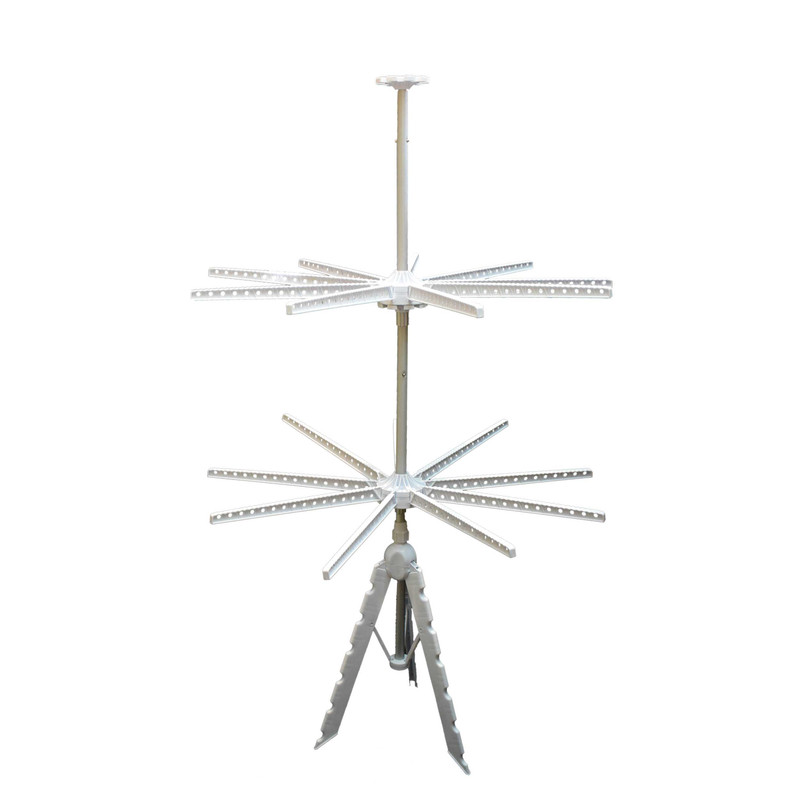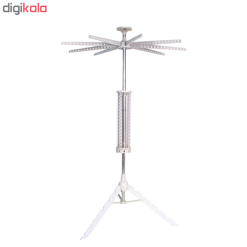 بند رخت طرح تلسکوپی ، این وسیله طرح جدیدی از یک بند رخت میباشد که در هنگام جمع بودن جای بسیار کمی اشغال نموده و شکل ظاهری زیبایی دارد این مجموعه می تواند بصورت دو طبقه و یک طبقه استفاده شود که البته نصب و تغییر حالت آن به یک طبقه یا دو طبقه بسیار آسان است. شاخکهای این مجموعه بطرف بالا جمع می شود و به تعداد مورد نیاز میتوان شاخه های آن را باز نمود این مجموعه قابلیت چرخش دارد که استفاده از آن در سه حالت هنگام رخت پهن کردن خشک کردن لباس و جمع کردن لباس آسان مینماید. این مجموعه یک رخت آویز تلسکوپی میباشد که تغییر ارتفاع شاخک ها ی این مجموعه قابلیت آویزان نمودن لباسهای بلند را فراهم میسازد و موجب گردش هوای مناسب بین لباس ها می شود.با توجه به سوراخ های متعددی که روی شاخک ها و همچنین قطعه خورشیدی آن وجود دارد میتوان از گیرهای S و اع آویزها استفاده نمود و روی شاخک ها می توان لباس ها را مانند یک طناب انداخت و یا بوسیله چوب رختی لباس ها را روی آن آویزان نمود.