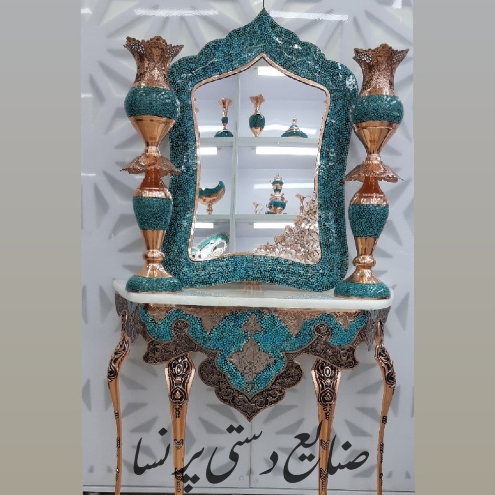 آینه شمعدان عروس فیروزه کوبی شده برند پرنسا مبلمونسرا مدل 261334