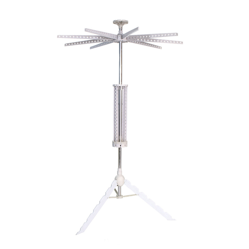 رختاویز طرح چتری با قابلیت افزایش ارتفاع،چرخش 360درجه و قابلیت جمع شو بدون بصورت کامل طراحی و تولید شده است.در هر طبقه این بندرخت 9 عدد بازو و در مجموع 18 عدد برای پهن کردن و آویز کردن به وسیله چوب رختی تعبیه شده است.این محصول به گونه ایی طراحی شده است که در هنگام استفاده فضای کمی را اشغال می کند همچنین می توانید زمانی که به آن نیاز ندارید بازوها و سه پایه آن را بصورت کامل جمع کنید در داخل کمد دیواری منزل، در زیر تخت، تراس و یا در هر گوشه ایی از منزل قرار دهید. ق افزایش ارتفاع در این مدل شما می توانید ارتفاع هر یک از طبقه های بندرخت را جهت پهن کردن البسه های بلند مانند ملحفه ، پتو و حوله افزایش دهید و از برخورد آن به زمین هنگام خشک شدن جلوگیری کنید