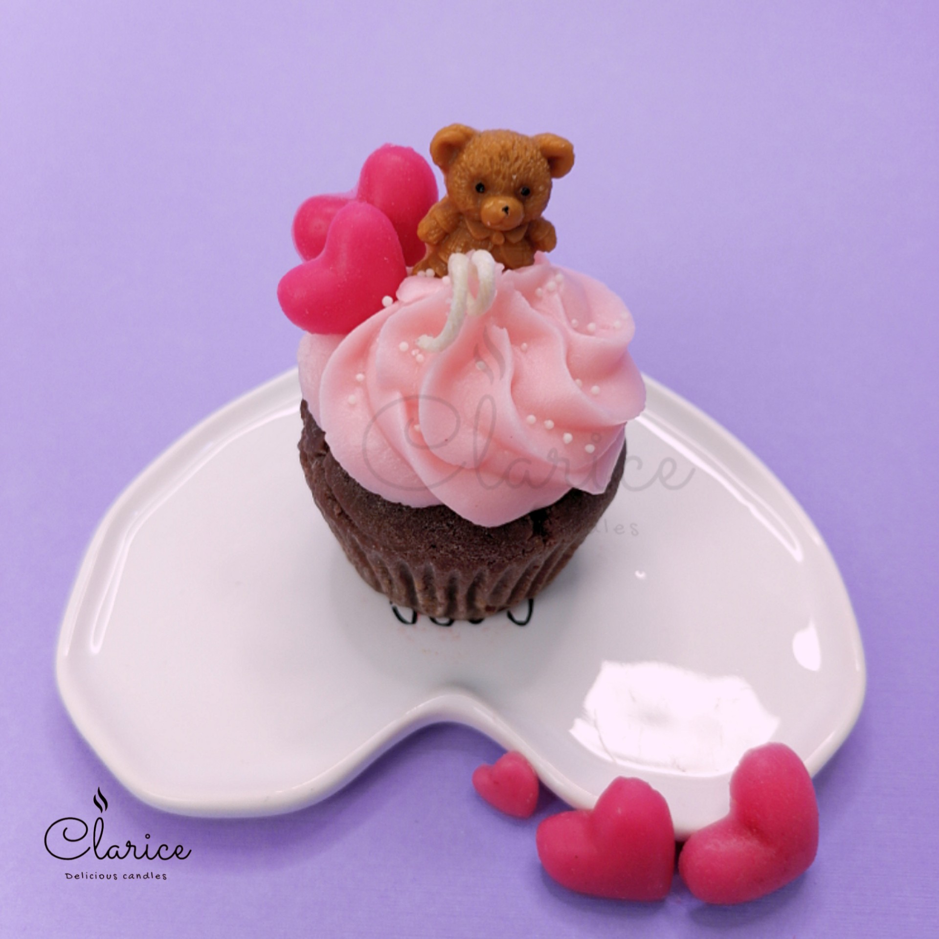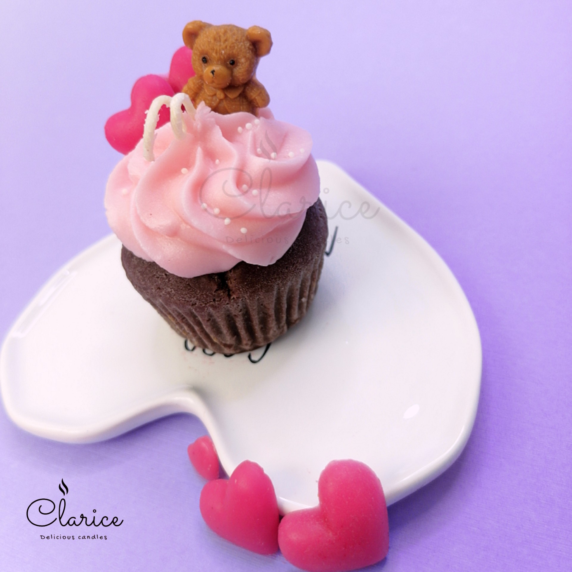 شمع کاپ کیک با خرس و قلب صورتی مبلمونسرا مدل 287639