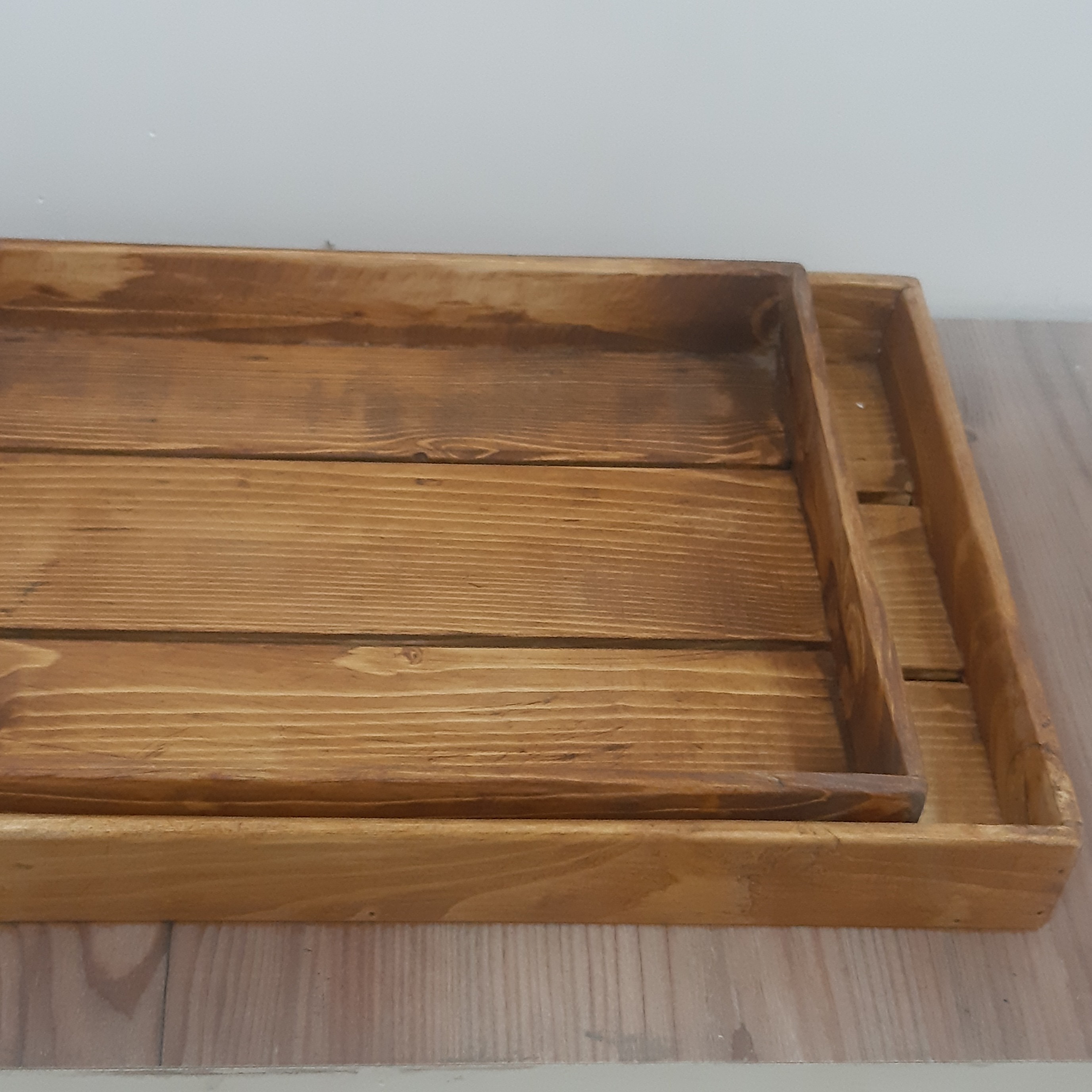 سینی چوبی اگر دسته چوبی هم می خواهید سفارش دهید رایگان براتون نصب می شود. سایز کوچک ۱۸*۲۶ قیمت ۴۰ ارزانتر سایز بزرگ ۳۶*۲۲ مناسب جهیزیه و چیدمان روی اپن بعنوان دکوری کاری بسیار شیک و با کیفیت از جنس چوب روس درجهیک سه دست رنگکاری شده است در این غرفه سینی با پایه و رایزر نیز موجود می باشد.