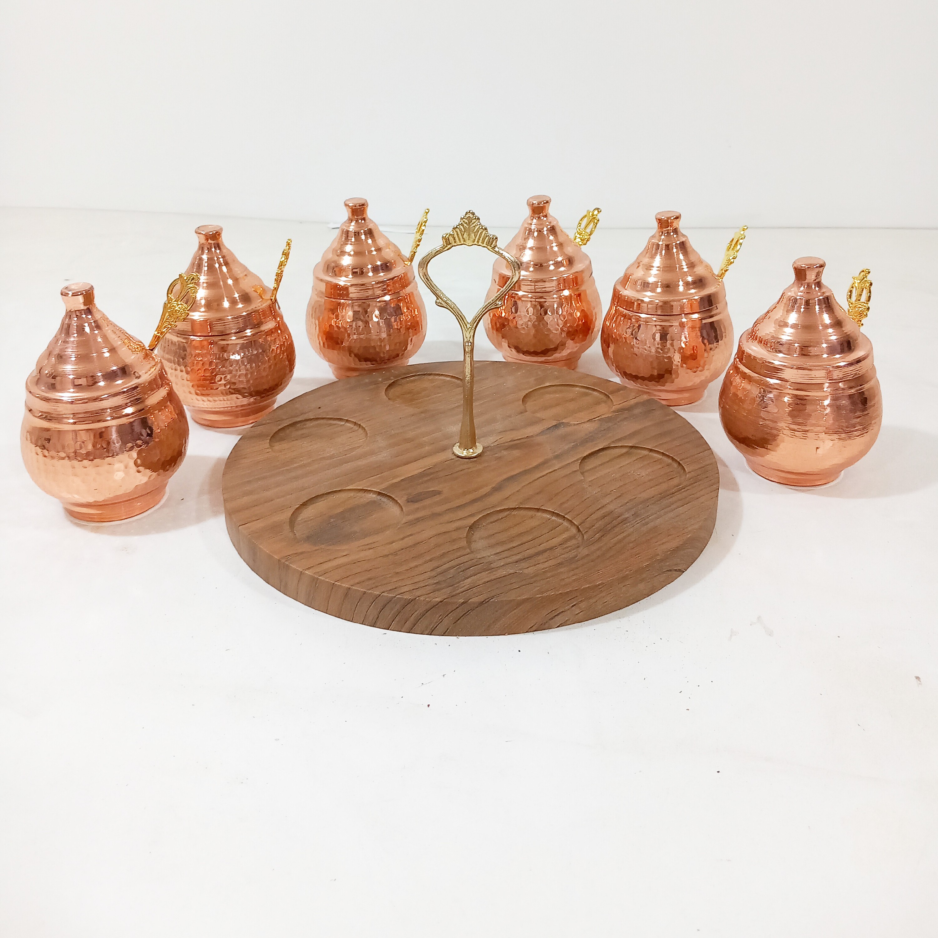 جا ادویه مسی زنجان دست ساز و رنگ ثابت نانو شده مدل شش تایی قاشق دار همراه استند مبلمونسرا مدل 288152