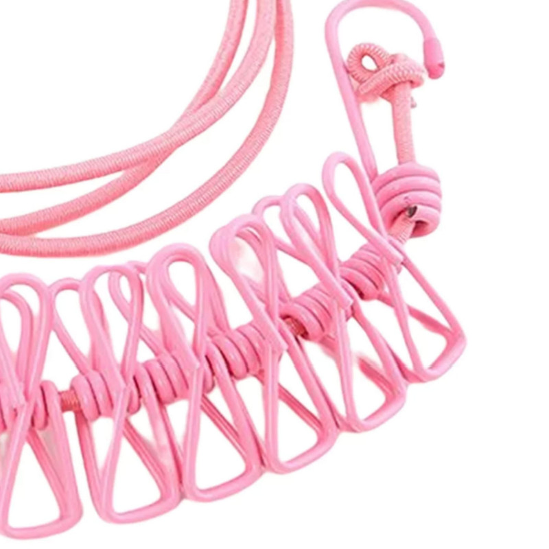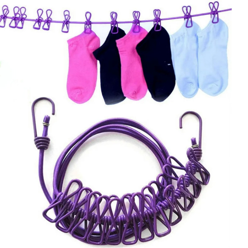 بند رخت گیره دار با قابلیت کش سانی، یکی از راهحلهای ساده و کارآمد برای نگهداری و خشک کردن لباسهای شماست. این بند رخت شامل یک طناب قابل کشش با گیرههایی است که به آن متصل شدهاند. با استفاده از این گیرهها، میتوانید لباسها را به طور محکم و مرتب در طناب قرار داده و بدون نگرانی از افتادن و جابجایی آنها، طناب را توسط قلاب هایی که در ابتدا و انتهای طناب طراحی شده، به هر جایی که میخواهید نصب کنید.با استفاده از این بند رخت گیره دار رنگی میتوانید لباسها را از روی بالکن و یا از دیوارهای اتاق به صورت عمودی آویزان کنید و فضای کمتری را اشغال کنید و از فضای اتاق به بهترین نحو استفاده نمایید. بنابراین، طناب لباس گیره دار با قابلیت کش سایی، یکی از بهترین راهحلها برای خشک کردن لباس در داخل یا خارج از منزل و همچنین مناسب برای خشک کردن لباس ها در مسافرت و کمپینگ است. بند رخت کشی گیره دار را می توان در هر مکانی مانند هتل، آپارتمان، حمام، بالکن، تراس و حتی روی شاخه درخت آویزان کرد. از این بند رخت گیره دار چند منظوره میتوان برای خشک کردن اع لباس زیر، کراوات، جوراب و حوله، لباس های سبک و … استفاده کرد. جنس طناب کشی، باکیفیت بالا و دارای تحمل نیروی کشش و مقاوم است. همچنین گیره ها از جنس فلز با خاصیت فنری قوی و روکش پلاستیکی و رنگارنگ ساخته شده است.