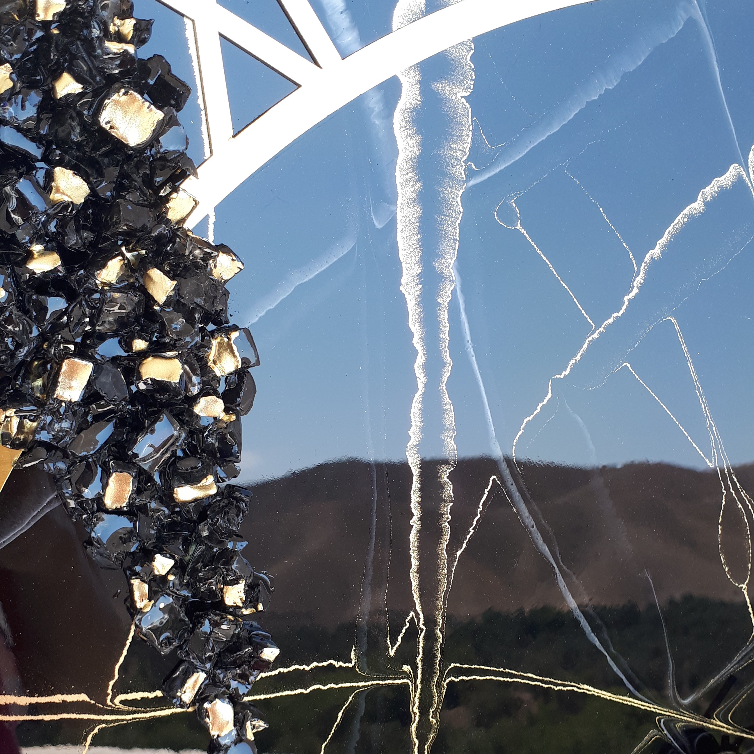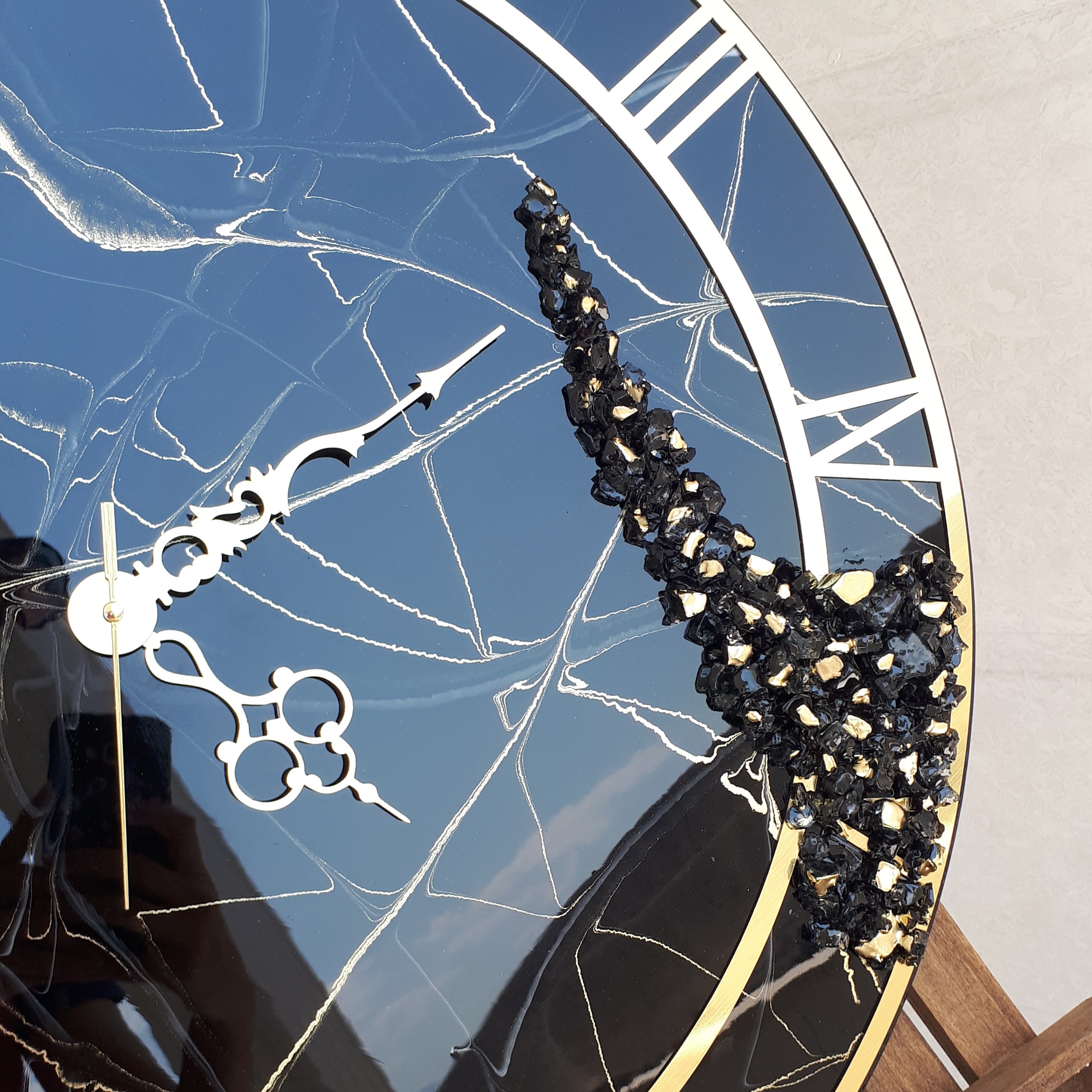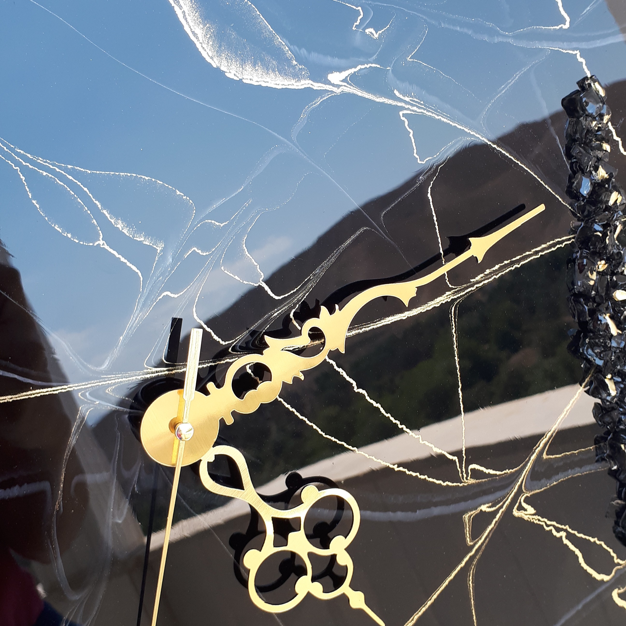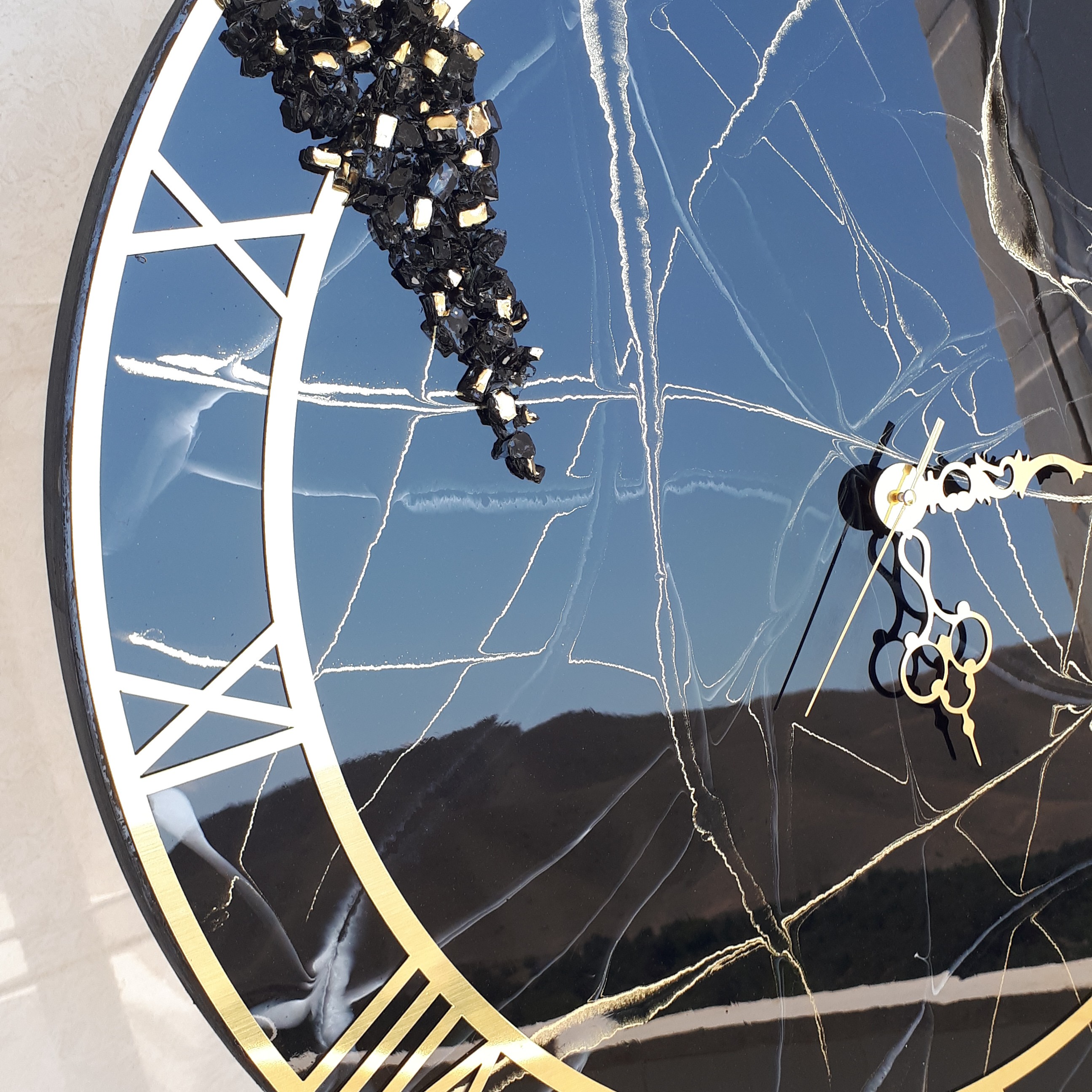 ساعت دیواری طرح ماربل مشکی 60 سانتی کار شده با کریستال و اعداد و عقربه مولتی استایل طلایی رنگ ثابت مبلمونسرا مدل 240259