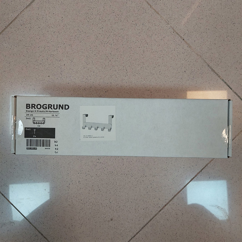 رخت آویز مدل BROGRUND با عرض 29 سانتی متر و ارتفاع 14 سانت توسط H Preutz و N Karlsson طراحی شده است. این محصول برای درهایی با ضخامت 4 سانتی متر مناسب می باشد. این آویز لباس پشت درب، ساده و متمایز با دیگر محصولات است. سری BROGRUND طیف گسترده ای از لوازم جانبی هوشمندانه را ارائه می دهد که در خانه ی شما نظم ایجاد می کند و در عین حال ظاهری تازه و مدرن به آن می بخشد.پوشش پشتی آویز مانع از خراشیدگی در می شود. این محصول روی لبه بالایی در آویزان میشود و به شما کمک می کند فضای بلااستفاده را به مکانی برای نگهداری حوله و کیف تبدیل کنید. ساخته شده از فولاد ضد زنگ که بادوام است و به راحتی تمیز می شود.