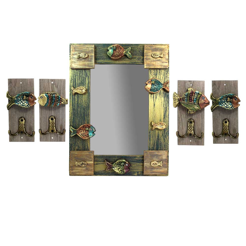 آویز لباس به همراه آینه مدل ماهی مجموعه 5 عددی مبلمونسرا مدل 210380