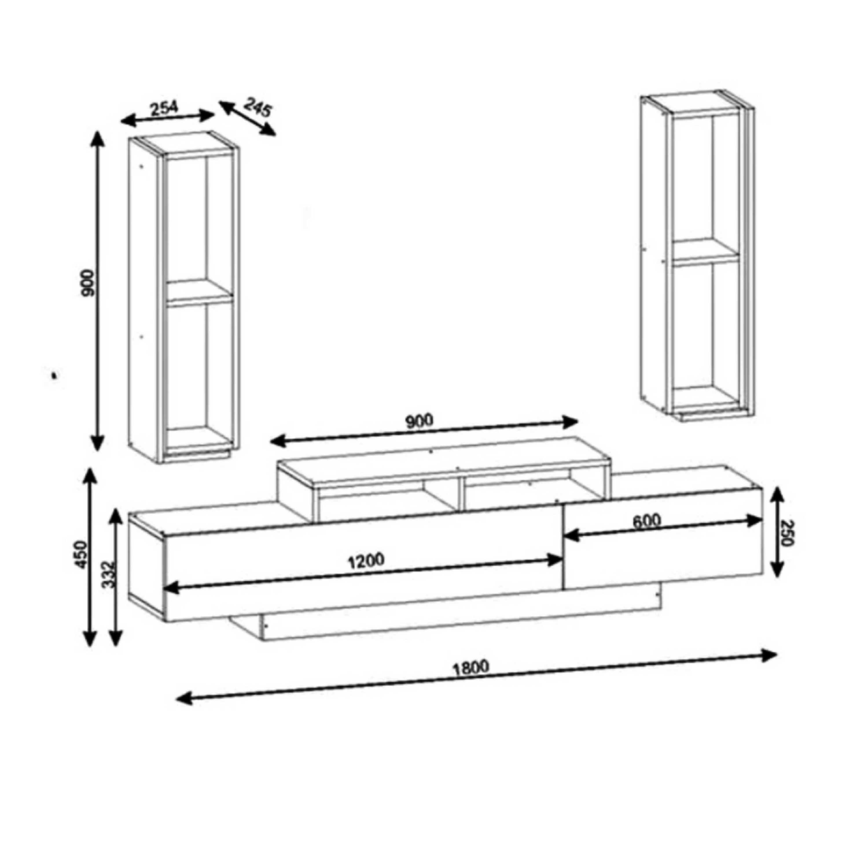 میز تلویزیون در سه تکهطراحی شده. دارای دو عدد درب داشبردی متفاوت بزرگ و کوچک. دارای دوطبقه دربالا که میتوان وسایل موردنیاز را در آن جای داد. در رنگ بندی های مختلف موجود هست. میتوانید از آخرین اسلاید عکس رنگ دلخواه خودرا سفارش دهید.
