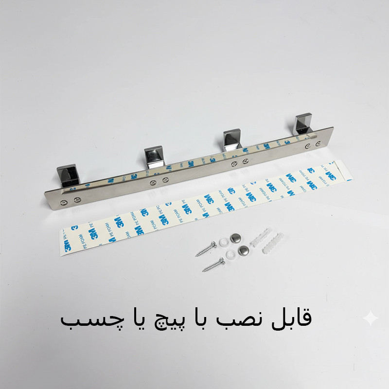 آویز مدل چهار شاخه با طراحی مدرن و کیفیت بالا، انتخابی کاربردی برای سرویس بهداشتی، آشپزخانه یا اتاق خواب است. این محصول از استیل ضد زنگ ساخته شده که در برابر رطوبت و زنگزدگی مقاومت بالایی دارد و برای استفاده در محیطهای مرطوب بسیار مناسب است. نصب این آویز به دو روش امکانپذیر است: با چسب ۳M قوی یا پیچ و رولپلاک (هر دو در بستهبندی موجود است)، بنابراین میتوانید بسته به نوع دیوار، روش نصب دلخواه خود را انتخاب کنید. آویز در دو رنگ طلایی و کروم عرضه میشود و با طول 34.5 سانتیمتر و ارتفاع 3.5 سانتیمتر، فضای کافی برای آویختن چندین حوله یا لباس را فراهم میکند.