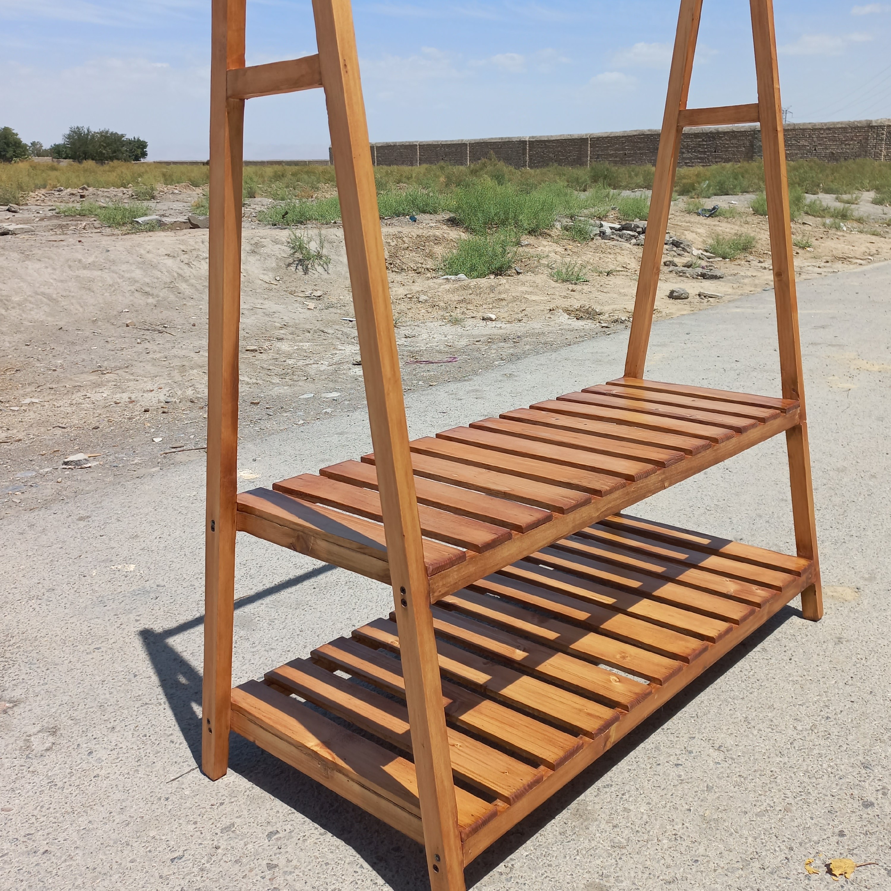 رگال لباس چوبی مدل دو طبقه ساده در ابعاد ارتفاع 150 طول ۸۵ رنگ قهوه ای روشن قابل سفارش در رنگ های قهوه ای تیره و روشن و کرم و ارتفاع 175 ارسال با چاپار رایگان به سراسر کشور