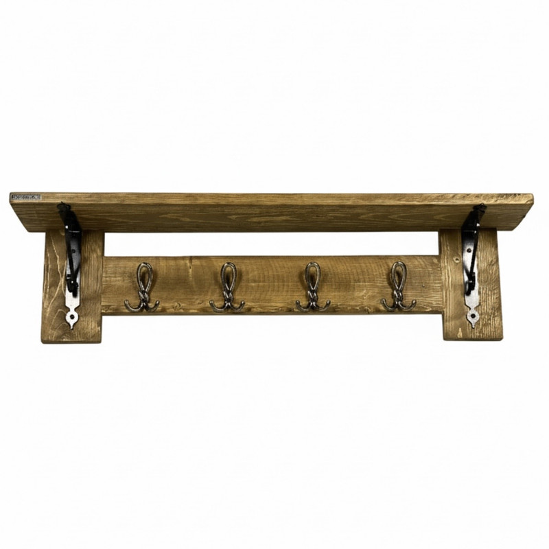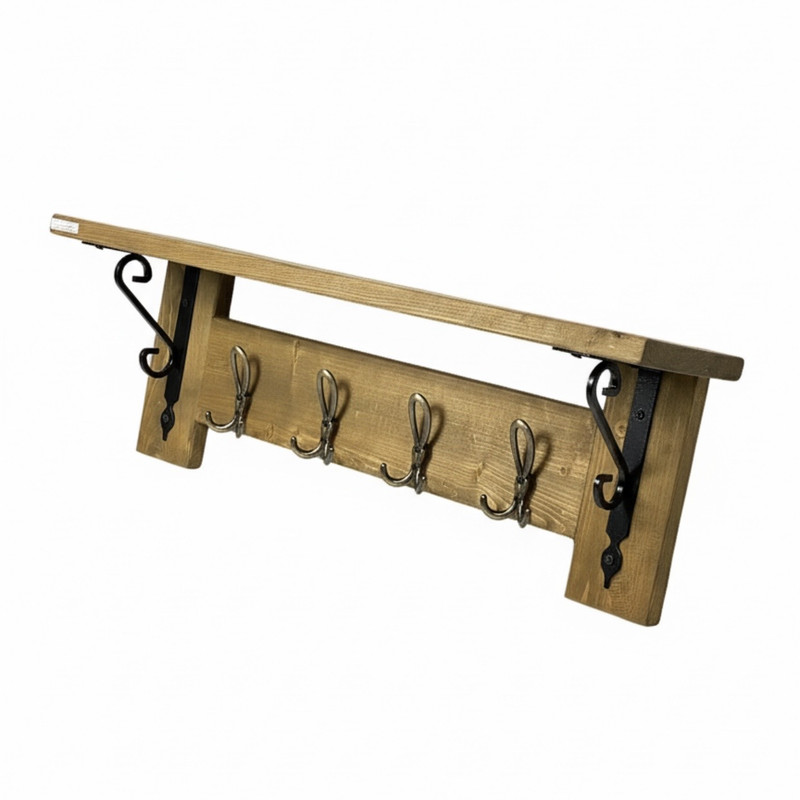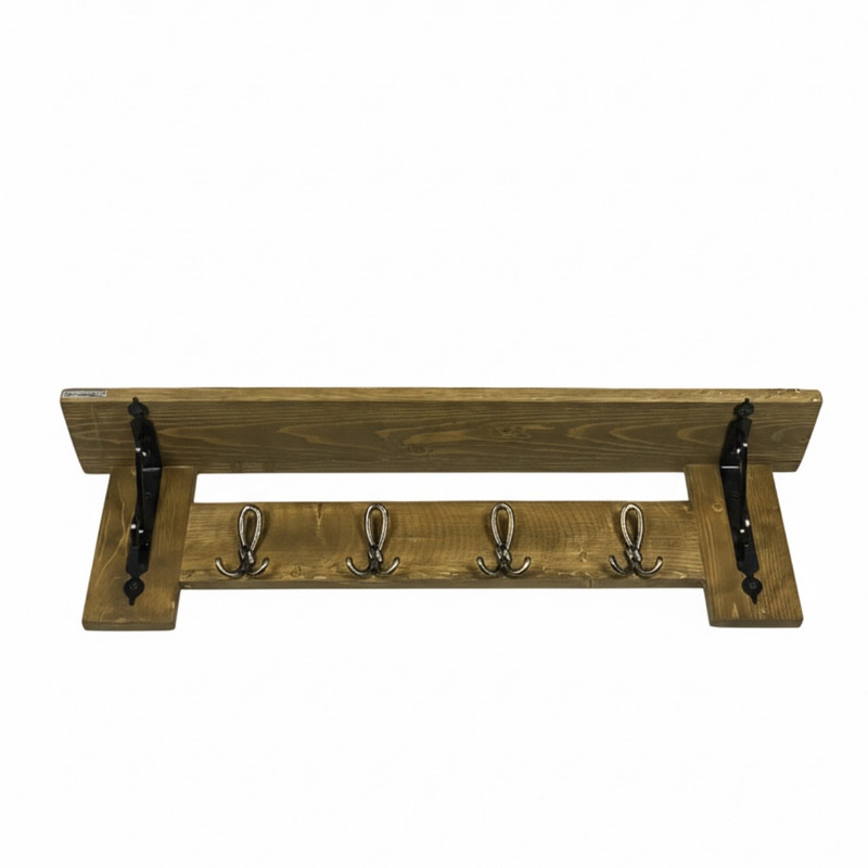 این جالباسی با طراحی کلاسیک و ساخته شده از چوب طبیعی درای یک طبقه در قسمت بالا که به عن شلف و چیدمان دکورراتیو می توان از استفاده کرد ، و همچنین در قسمت پایین با ۴ قلاب که هر کدام امکان اویز سه لباس را دارا می باشد. طراحی کلاسیک با استفاده از چوب طبیعی و فلز که با پایه های فرفورژه ترکیب شده جلوه ی خاصی به دکوراسیون خانه شما می دهد، همچنین این جالباسی قابلیت نصب اسان تنها با دو عدد پیچ و رولپلاک بر روی دیوار می باشد.