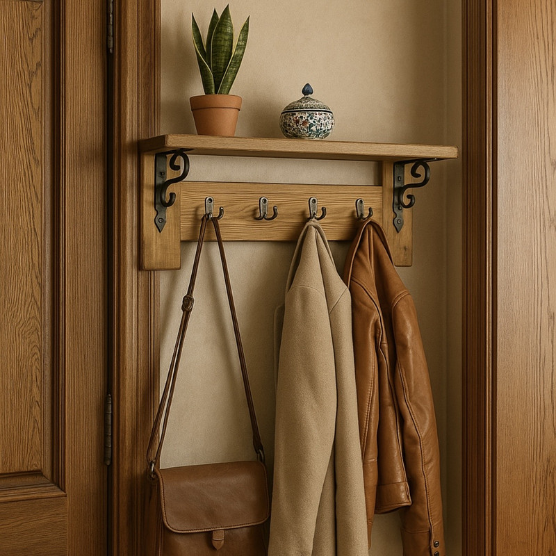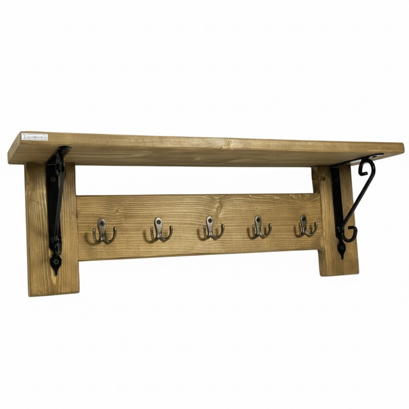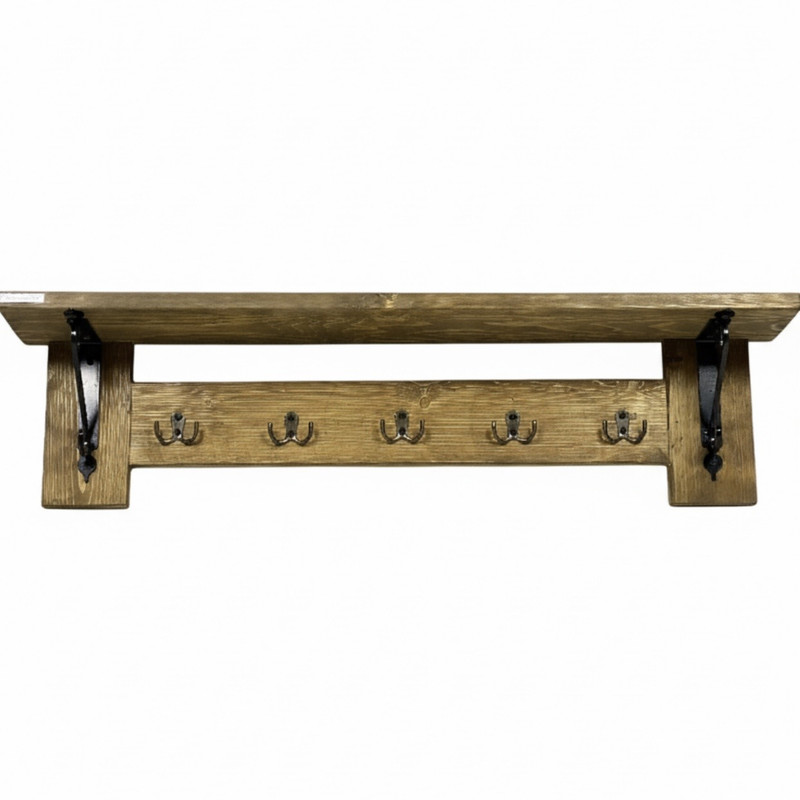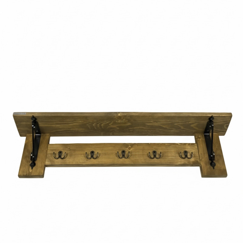 این جالباسی با طراحی کلاسیک و ساخته شده از چوب طبیعی درای یک طبقه در قسمت بالا که به عن شلف و چیدمان دکورراتیو می توان از استفاده کرد ، و همچنین در قسمت پایین با 5 قلاب که هر کدام امکان اویز دو لباس را دارا می باشد. طراحی کلاسیک با استفاده از چوب طبیعی و فلز که با پایه های فرفورژه ترکیب شده جلوه ی خاصی به دکوراسیون خانه شما می دهد، همچنین این جالباسی قابلیت نصب اسان تنها با دو عدد پیچ و رولپلاک بر روی دیوار می باشد.