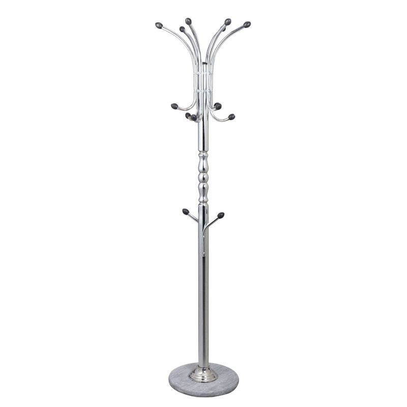 جالباسی های ایستاده مدل NA101 استیل نارین صنعت در خانه و محیطهای عمومی مانند ادارهها و شرکتها کاربرد دارد و انتخابی سنجیده برای نظمدادن و مرتبکردن لباسهای مختلف می باشد. این جالباسی به صورت ایستاده طراحی شده است تا کمترین فضای ممکن را اشغال کند. در عین حال یک جالباسی مدرن، زیبا و بسیار با کیفیت می باشد. بدنهی این رخت آویز از استیل با آبکاری کروم ساخته شده است تا مقاومت خوبی در برابر فشار و وزن اع پوشاک داشته باشد. و زیبایی و درخشندگی آن را بیش از پیش نمایش دهد. کروم علاوه بر زیبایی، از زنگزدگی و آسیب به استیل نیز جلوگیری میکند. شاخههای این محصول در فاصلههایی مناسب نصب شدهاند تا وزن پوشاک بهطور مساوی در تمام آویز تقسیم شده و مانع افتادن یا سقوط ناگهانی آن شود. پایه این رخت آویز از جنس سنگ مرمر است تا علاوه بر زیبایی، سنگینی لازم برای ایستایی و استحکام رخت آویز را فراهم کند. درقسمت پایین رخت آویز دو شاخه قرار دارد که میتواند توسط کودکان مورد استفاده قرار بگیرد. این شاخه ها همچنین برای قرار دادن چتر، عصا، کلاه، حوله و جوراب نیز مناسب هستند.
