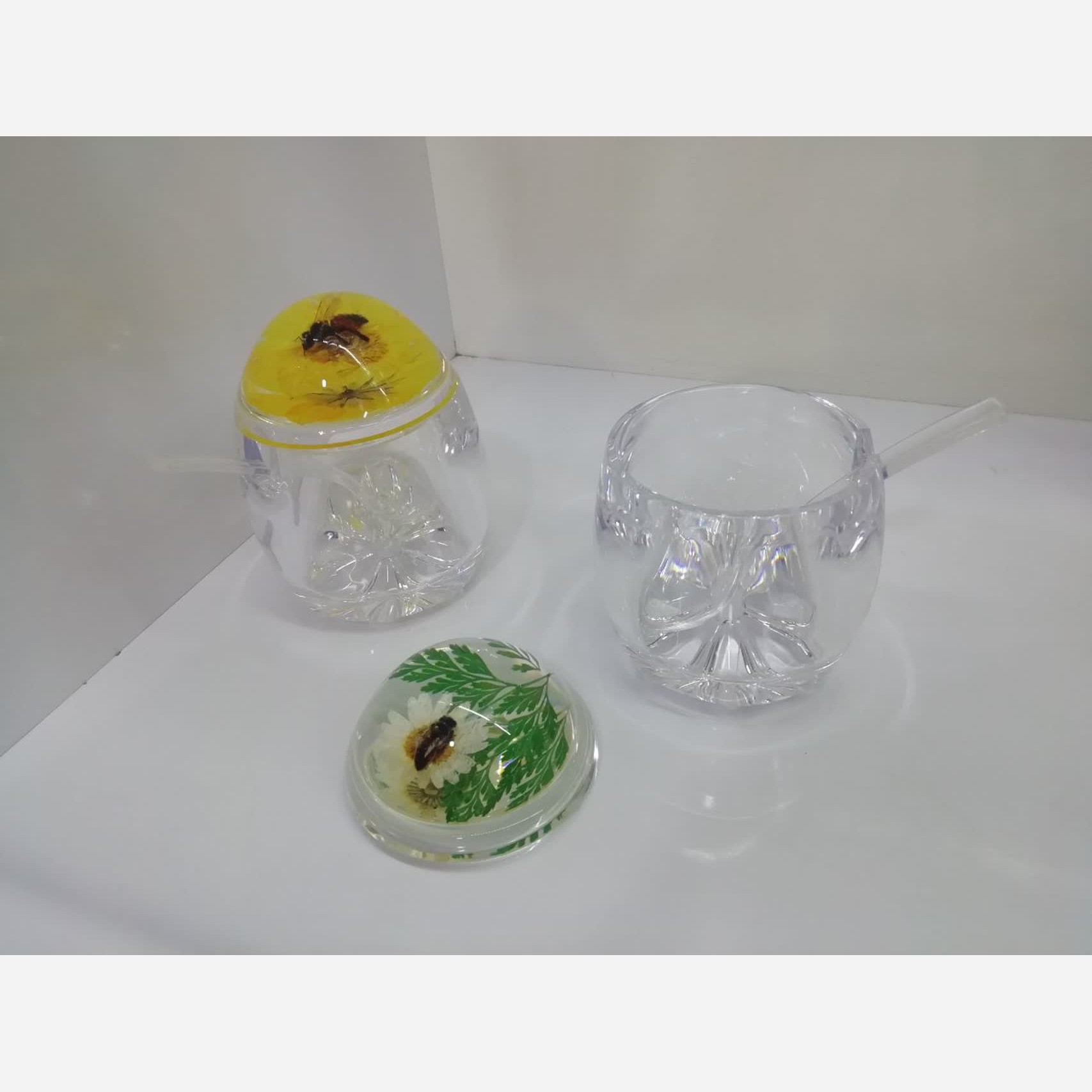 عسل خوری اکرولیک دارای چند طرح مختلف درب دارای قاشق ساخت چین با کیفیت و زیبا نشکن و مقاوم این محصول زیبا مناسب برای نگه داری و سرو عسل ،مربا،شکر و...میباشد حتما قبل از سفارش مدل مد نظرتون رو اطلاع بدید در غیر اینصورت ارسال بصورت رندوم انجام میشود