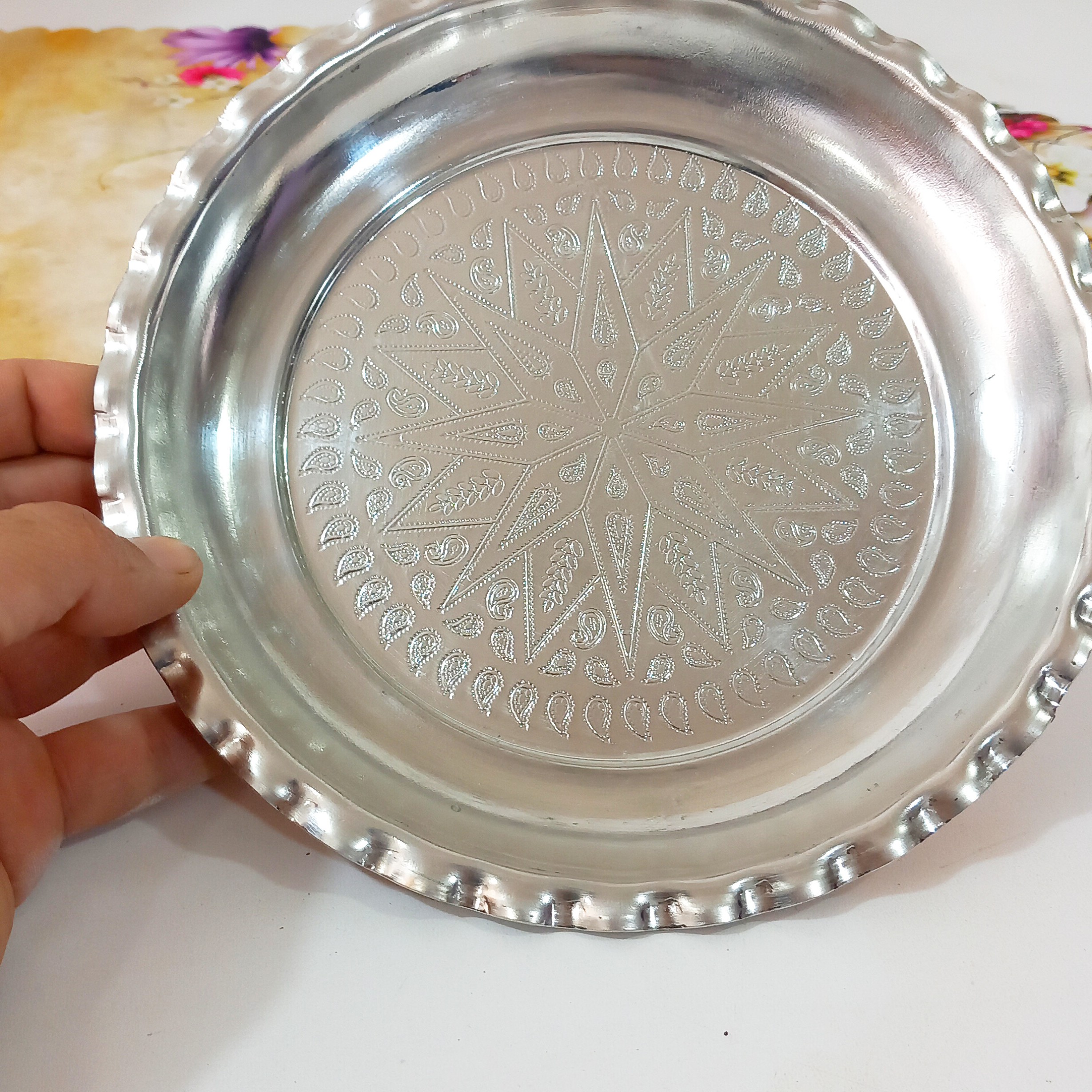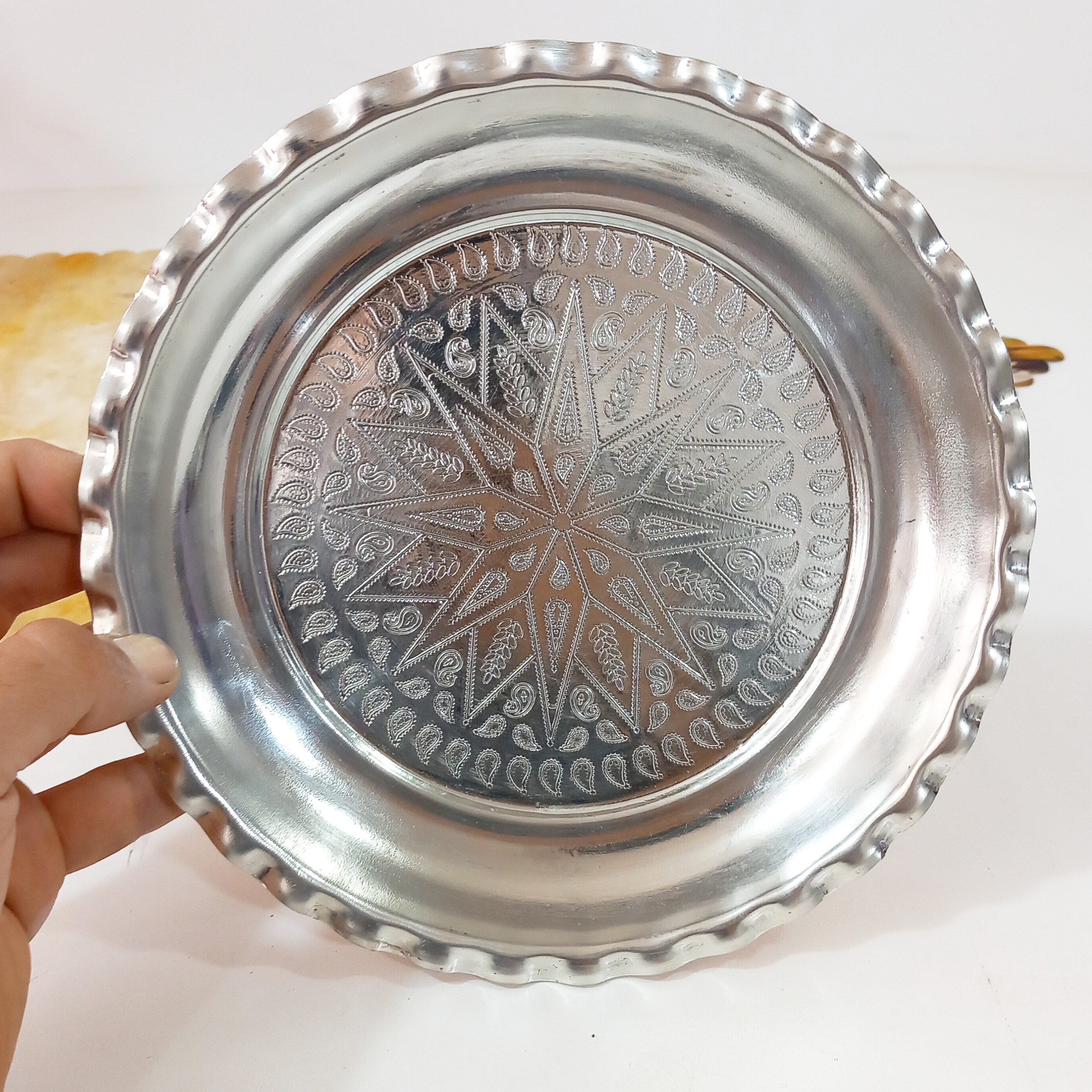 دیس پلو خوری مسی زنجان داخل طرح دار قلع شده دور چین دار مبلمونسرا مدل 270713