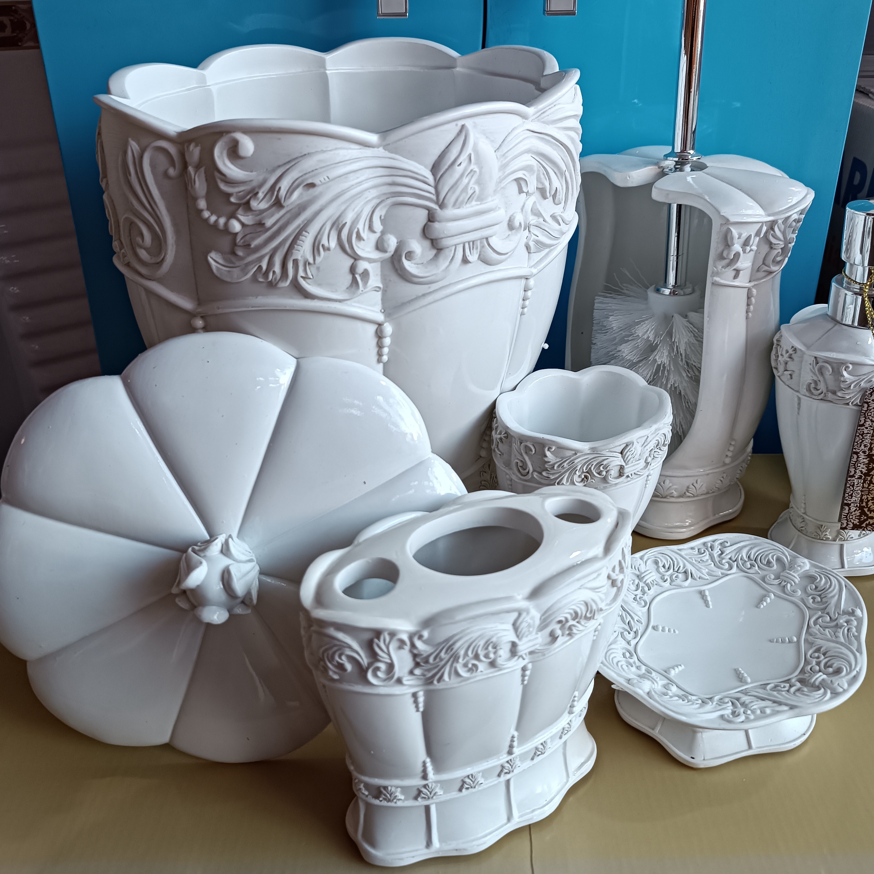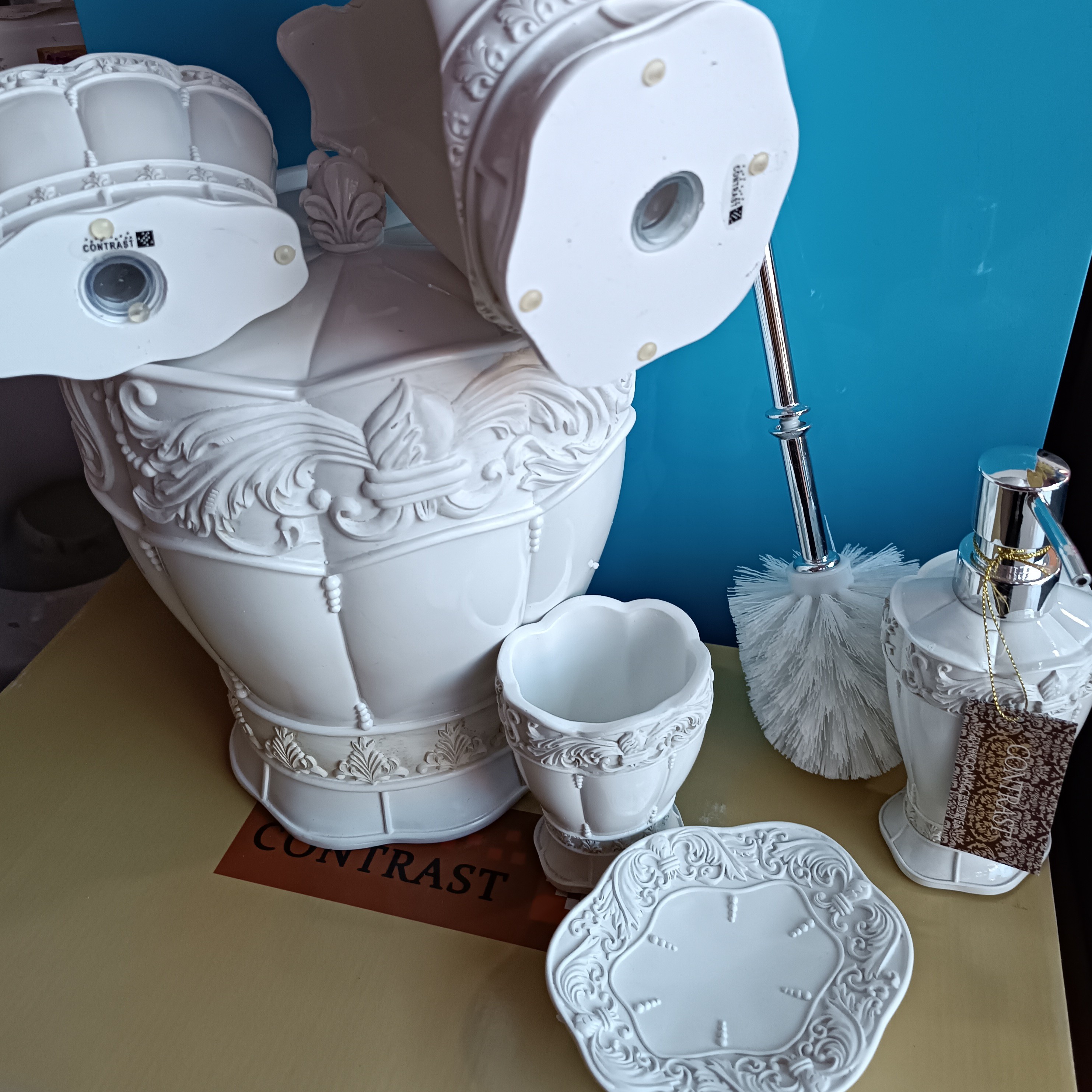 ست سرویس بهداشتی 6تکه کنتراست شامل سطل درب داربه ارتفاع2۵وقطر۲۰سانتیمتر،برس برشی،جامایع،جامسواک،لیوان وجاصابون می باشد.درقسمت تحتانی جامسواک وفرچه سوراخی جهت خروج آب تعبیه شده است.همچنین طراحی زیبا ،جنس مقاوم،قابلیت شستشو،ازخصوصیات متمایزاین محصول می باشد.شرکت کنتراست موفقیت خودراباتولیدمحصولات زیباوبادوام سرویس بهداشتی وحمام وآشپزخانه،برهمگان ثابت نموده است.این مجموعه برای بانوان باسلیقه علی الخصوص نوعروسان پیشنهادمی گردد