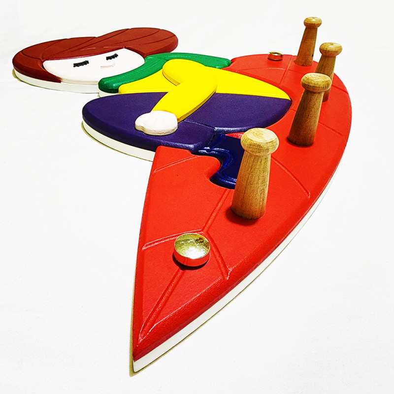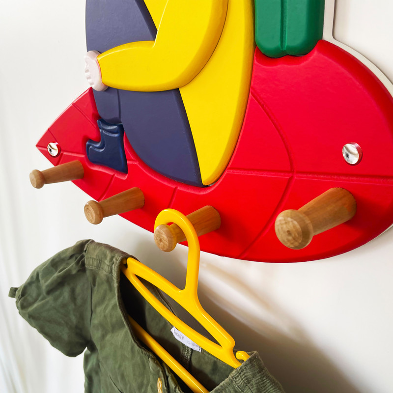 ایجاد فضایی شاد و جذاب مانند اتاق خوابی جذاب ، فضای آموزشیِ دلچسب و فضای درمانیِ شاداب برای کودکان موضوع هر روزه ماست . این محصول یک جالباسی فانتزیِ چوبی و ابتکاری جهت آویزان کردن البسه کودکان می باشد که با رنگ هایِ زیبا و جذاب و سازگار بامحیط زیست انسان رنگ آمیزی شده است.این جالباسی علاوه بر کاربردی بودن باعث آموزش نظم و انضباط شخصی برای کودکان شما می گردد.