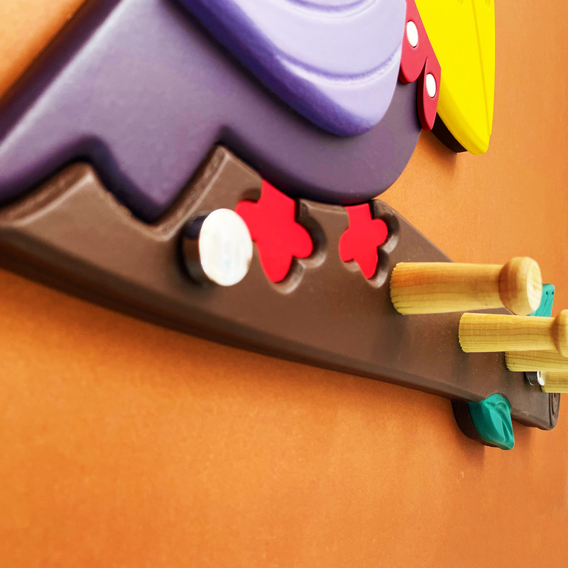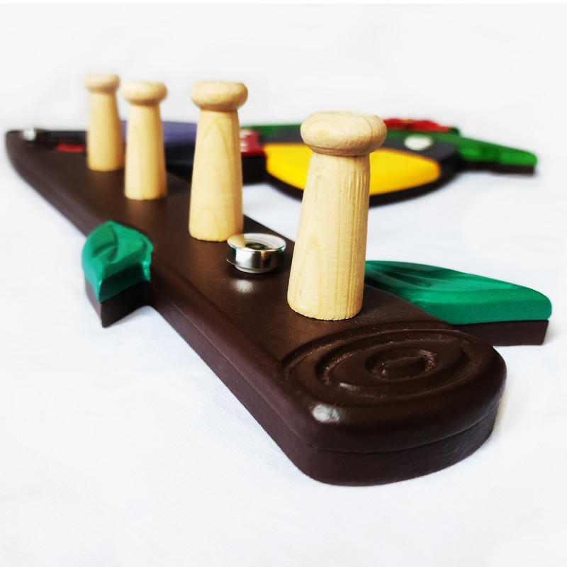 ایجاد فضایی شاد و جذاب مانند اتاق خوابی جذاب ، فضای آموزشیِ دلچسب و فضای درمانیِ شاداب برای کودکان موضوع هر روزه ماست . این محصول یک جالباسی فانتزیِ چوبی و ابتکاری جهت آویزان کردن البسه کودکان می باشد که با رنگ هایِ زیبا و جذاب و سازگار بامحیط زیست انسان رنگ آمیزی شده است.این جالباسی علاوه بر کاربردی بودن باعث آموزش نظم و انضباط شخصی برای کودکان شما می گردد.