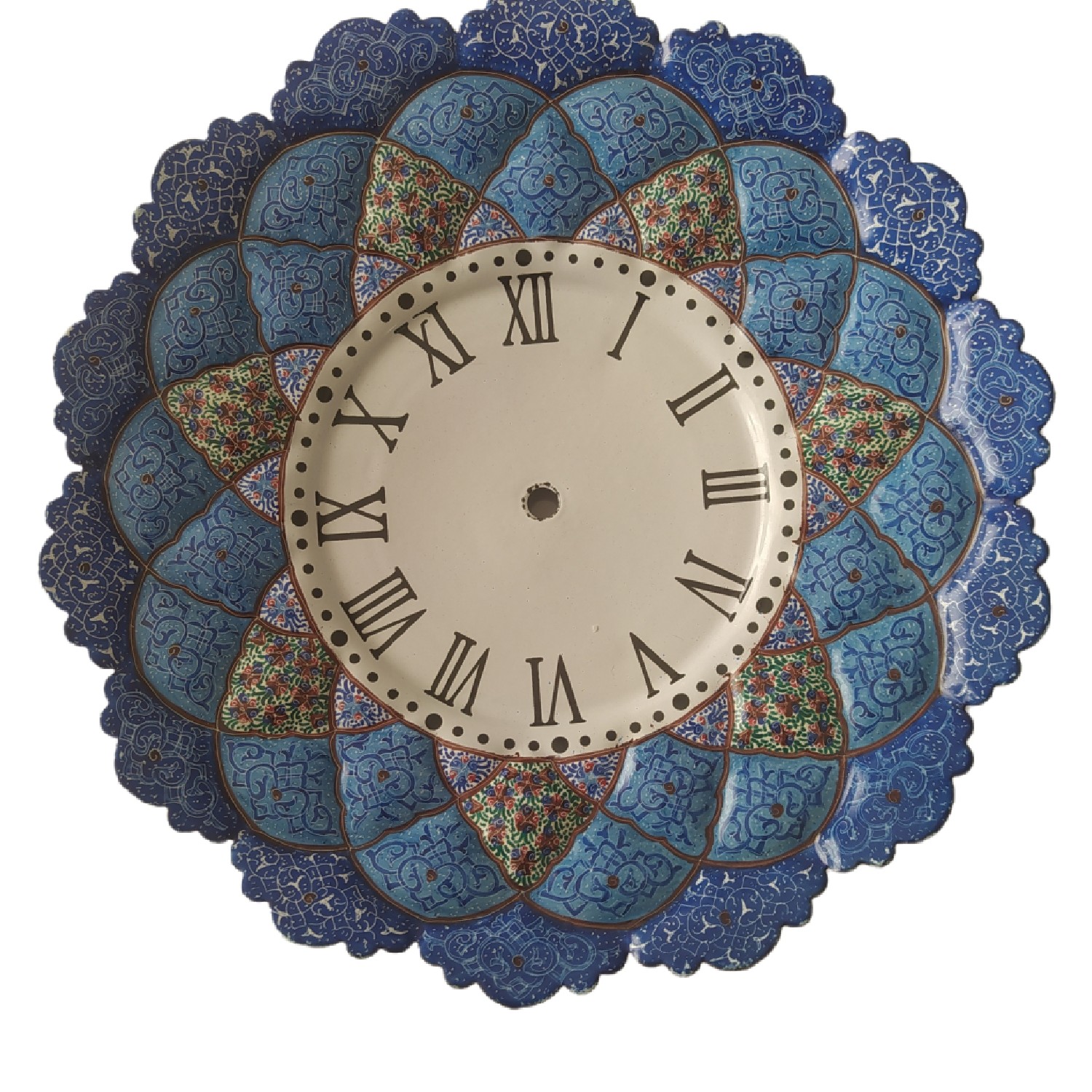 ساعت دیواری بشقاب مینا کاری شد هنر دست استاد کاران اصفهان میباشد این ساعت زیبا تلفیق دو هنر زیبای مینا کاری و خوشنویسی میباشد صفحه ساعت از جنس مس میباشد که با هنر مینا کاری زینت داده شده است اندازه ساعت به قطر کامل 30 سانتی متر میباشد. انتخاب مناسبی برای هدیه دادن و مناسب برای منزل و محل کارتان بر روی دیوار میباشد. برای علاقمندان به سبک سنتی و اصیل این ساعت دیواری هدیه ارزشمند و کاربردی است