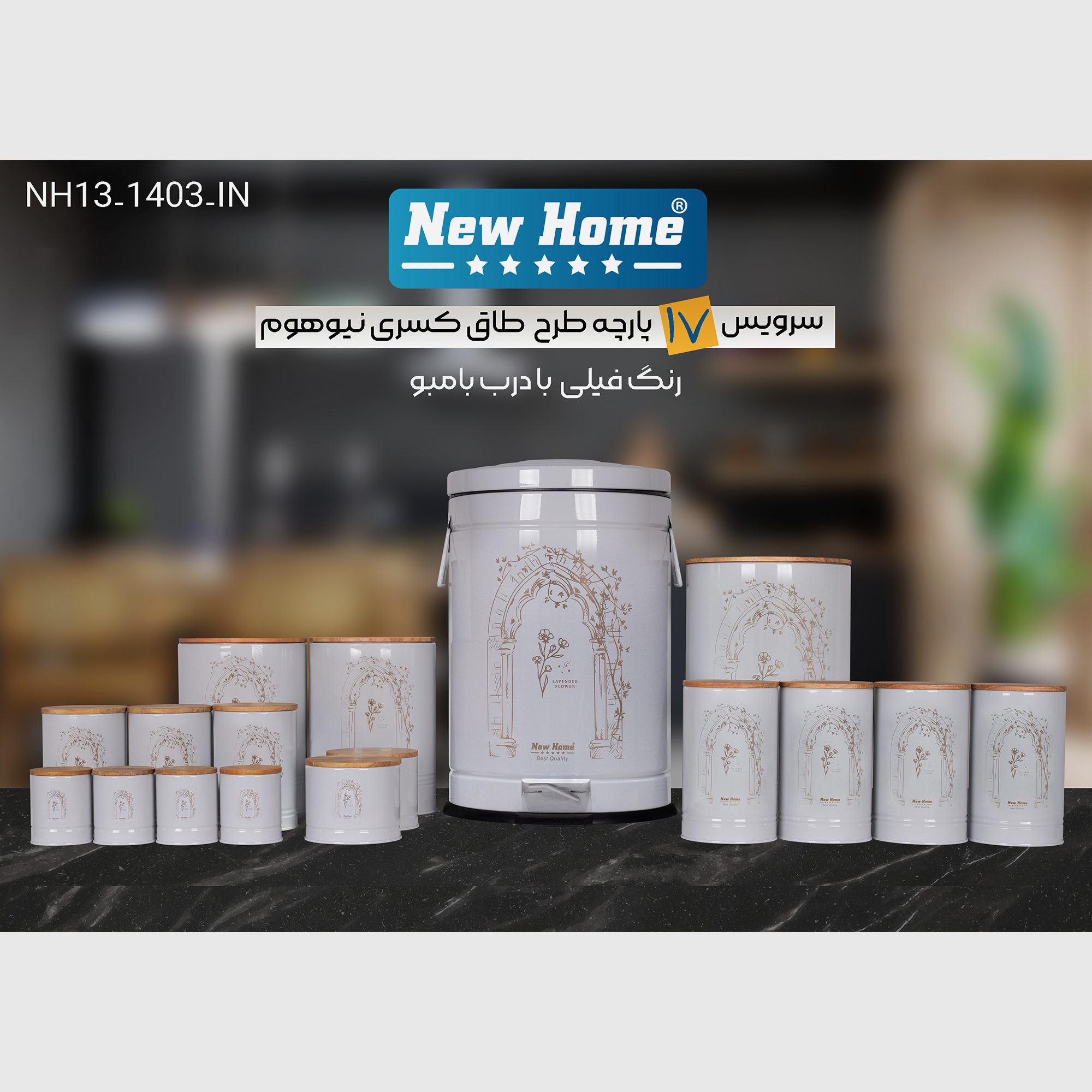 سرویس آشپزخانه 17 پارچه نیوهوم مدل طاق کسری بامبو کد NH13-1403IN مبلمونسرا مدل 293073