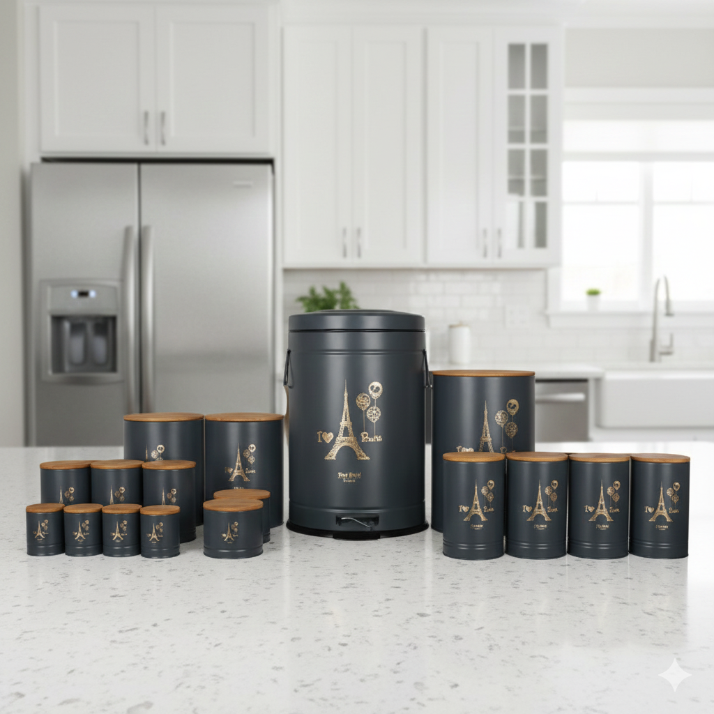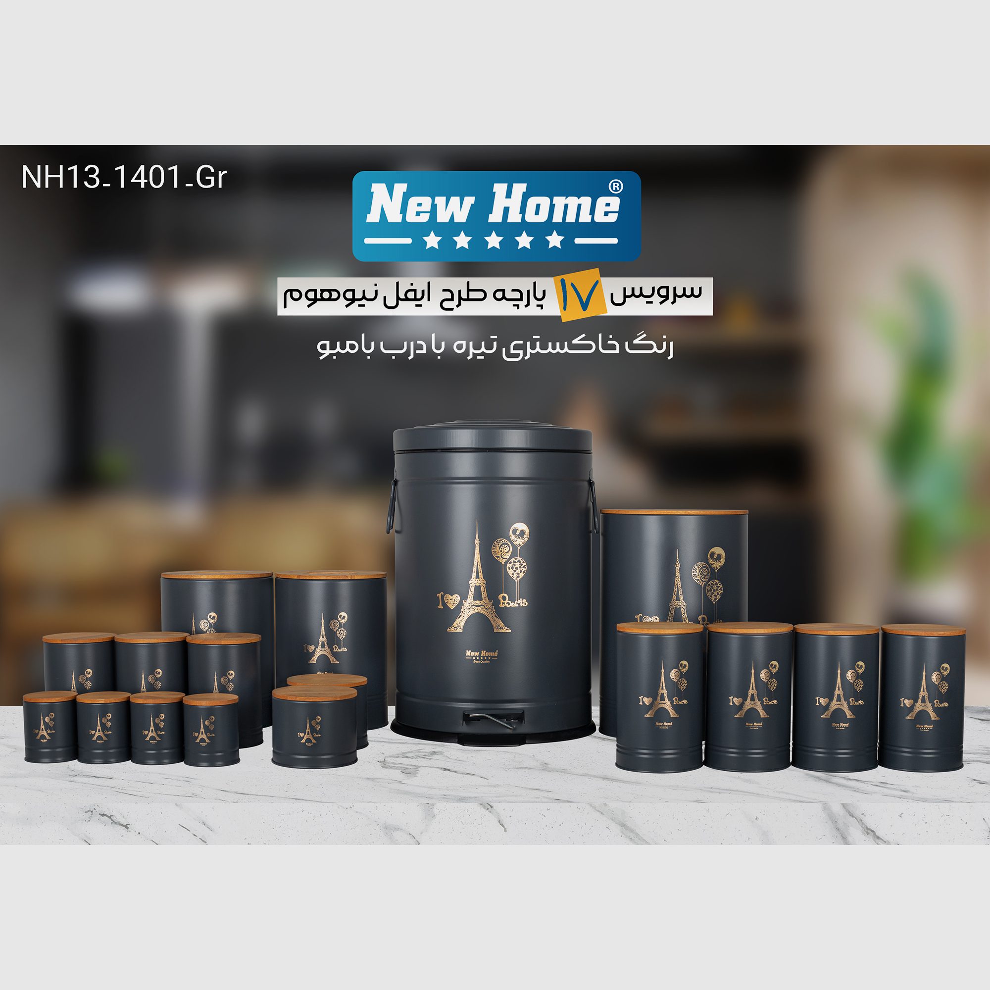 سرویس آشپزخانه 17 پارچه نیوهوم مدل ایفل بامبو کد NH13-1401-GR مبلمونسرا مدل 288861