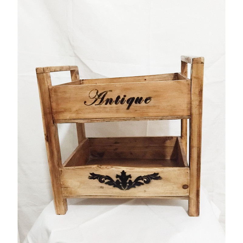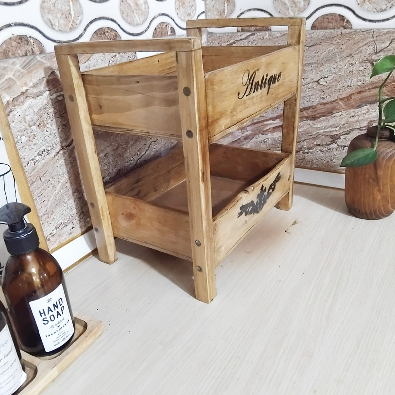 سبد سیب زمینی پیاز چوبی که در روی کابینت قرار میگیرد و به راحتی قابل جا به جاشدن است.این محصول دارای دو طبقه است و تماما از چوب طبیعی ساخته شده و رنگ آن قابلیت شستشو دارد.اما برای طول عمر بیشتر از دستمال نمدار استفاده کنید.