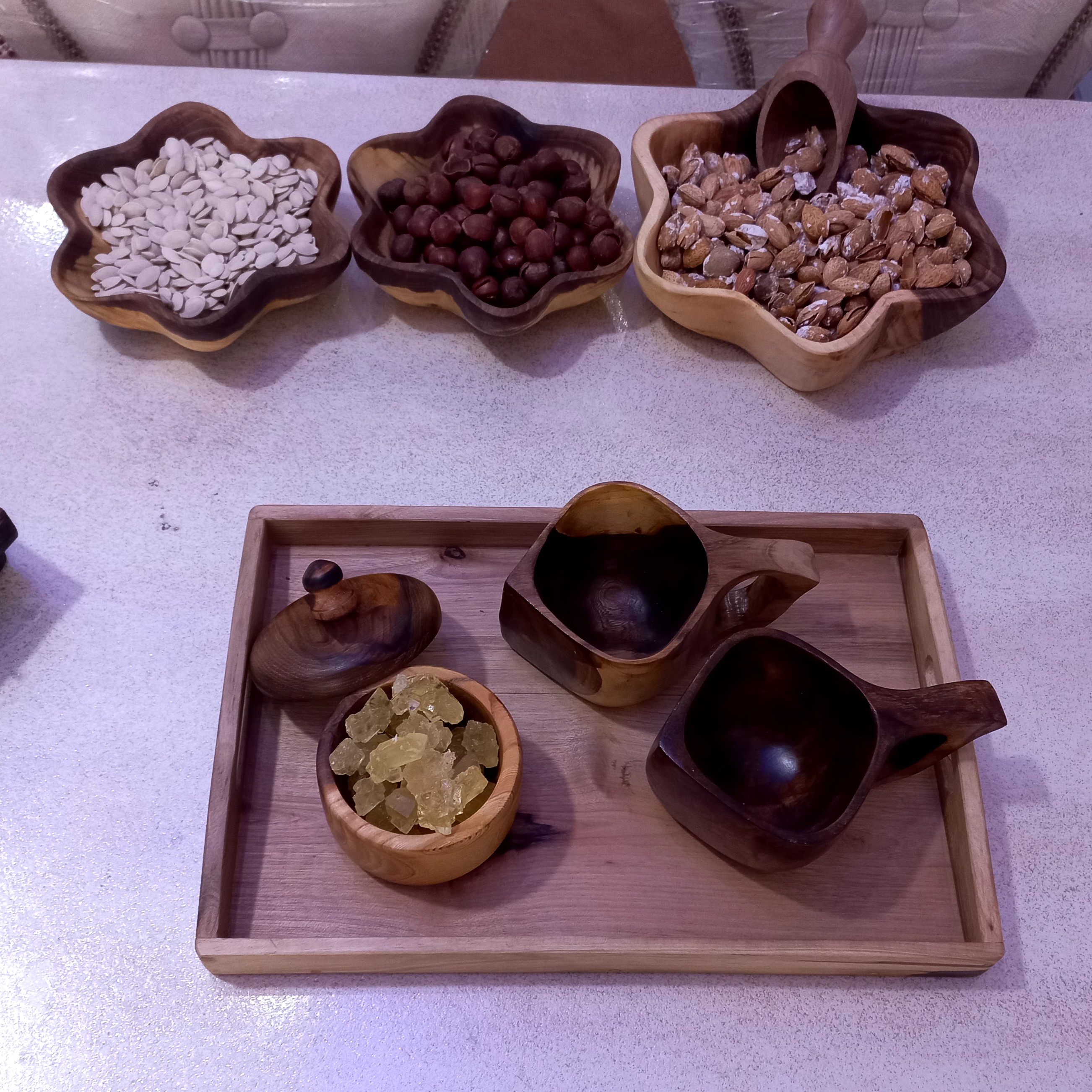 آجیل خوری وشکلات خوری ستاره ای صفرتا صدکاردست جنس چوب گردو قابل سفارش هر تعداد که بخواهید