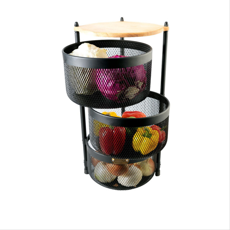 سبد سیب زمینی و پیاز مدل سه طبقه توری گرد چوبی متحرک کد 412 مبلمونسرا مدل 210552