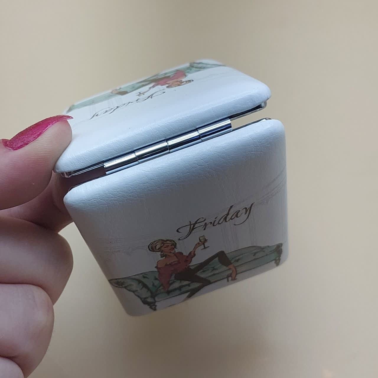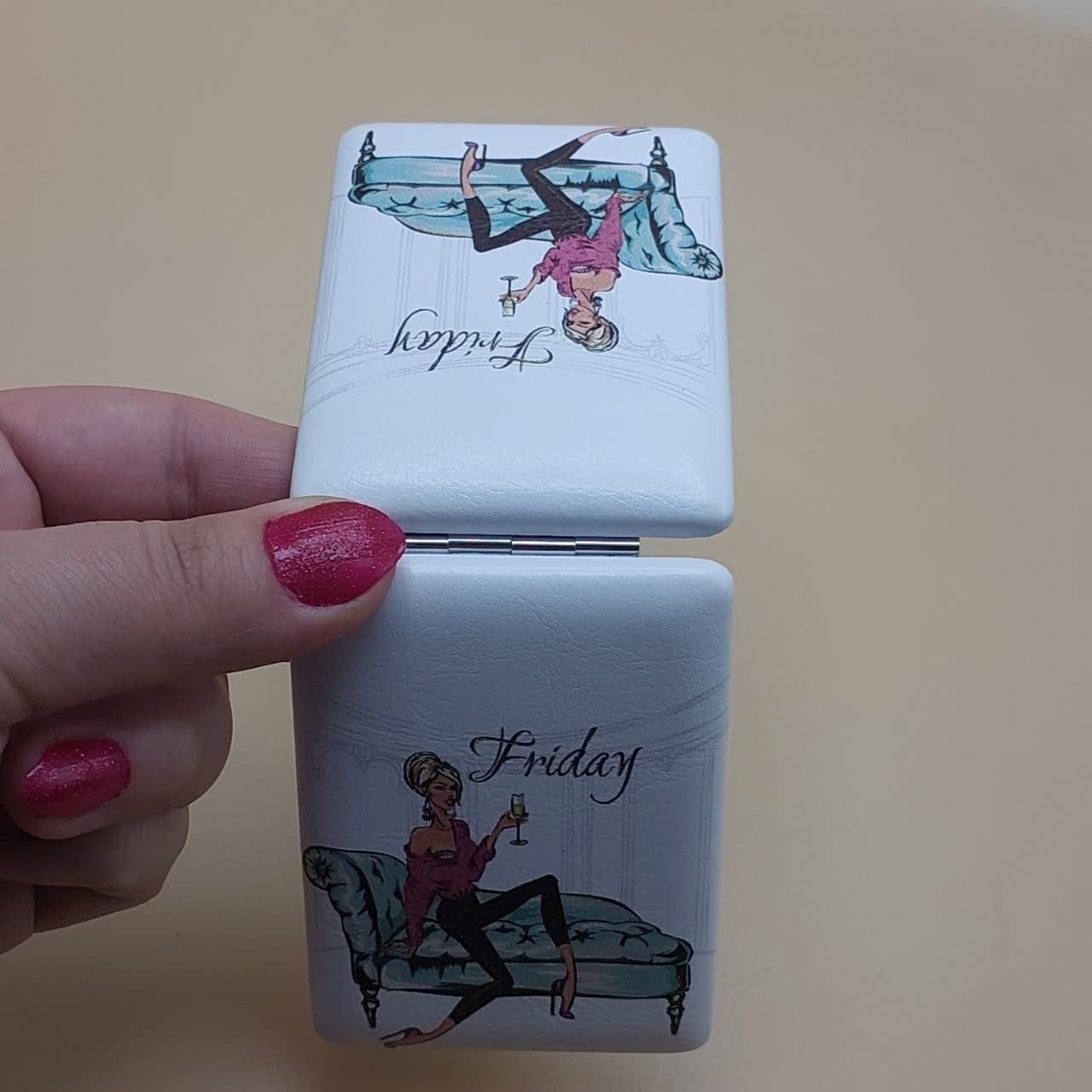 آینه آرایشی طرح دار cosmetic mirror روکش چرمی دو طرف طرح یکسان با دو آینه معمولی و آینه با بزرگنمایی 2 برابر و درب مگنتی مبلمونسرا مدل 262926