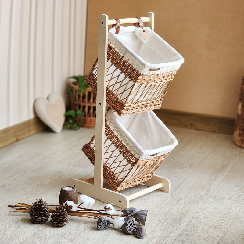 دو سبد پنجره ای فانتزی با لایی پارچه ای پنبه ای که روی ریل های پایه ای چوبی آویزان شده یکی از محصولات منحصر به فرد و تازه طراحی شده برند سبدکو می باشد که کیفیت را اولین هدف خود قرار داده است ...