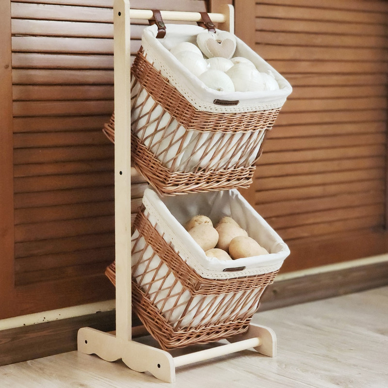 همانطور که می دانید ظروف پلاستیکی و فلزی رطوبت را نگه می دارند و مانع تنفس مواد غذایی می شوند، بنابراین خراب شدن سیب زمینی و پیاز را سرعت می بخشند، در صورتیکه سبدهای بافته شده از شاخه های درخت بید به دلیل جنس طبیعی و نوع بافت خود با عبور دادن هوا مدت نگهداری اینگونه مواد غذایی را در شرایط مطلوب افزایش می دهند، علاوه بر این طراحی چشم ز این محصول تمی طبیعی و مدرن به فضای آشپزخانه شما می دهد. آویز قلب شکل این سبد هم که به بند چرمی سبد متصل شده، قابل جدا سازی برای تمیز کردن می باشد.