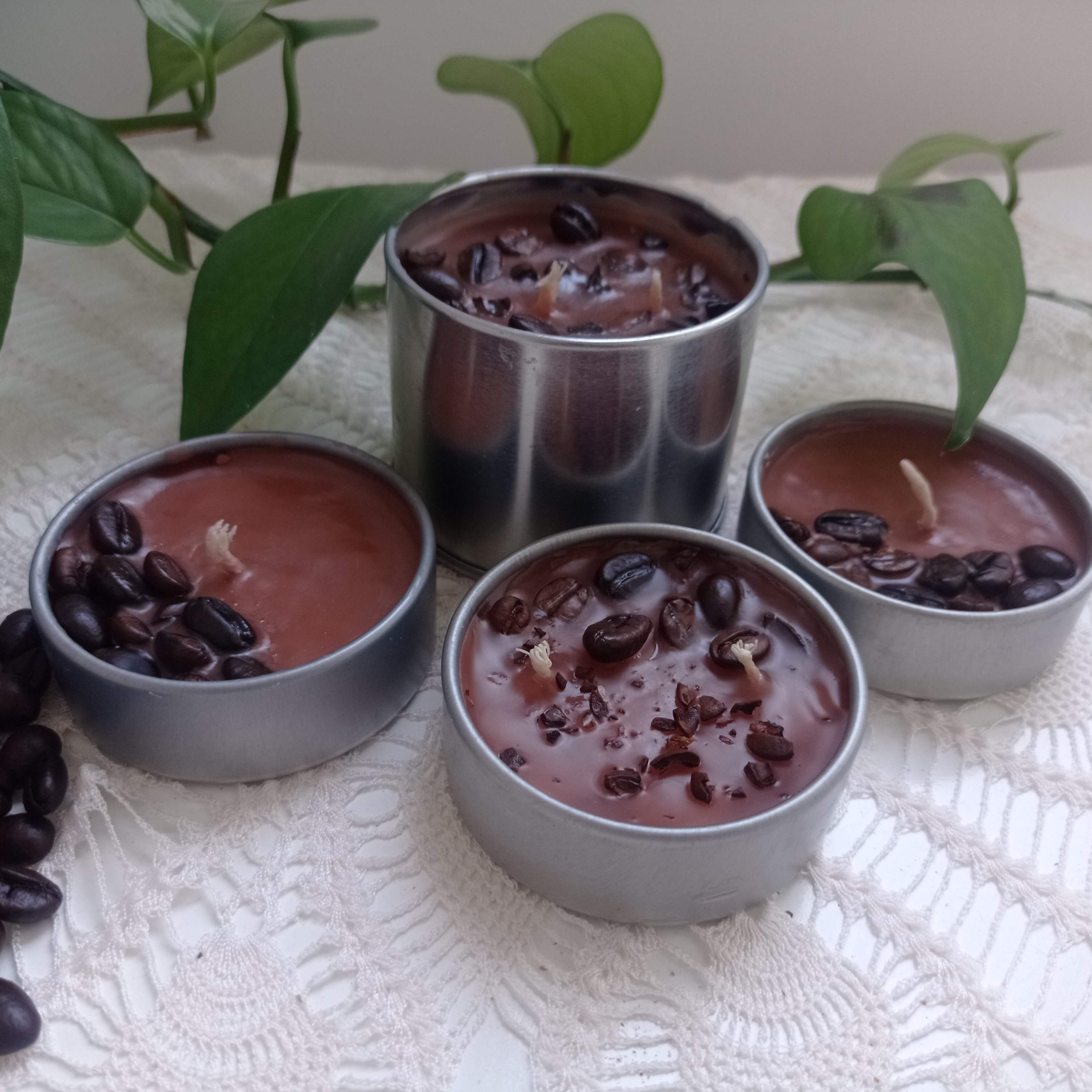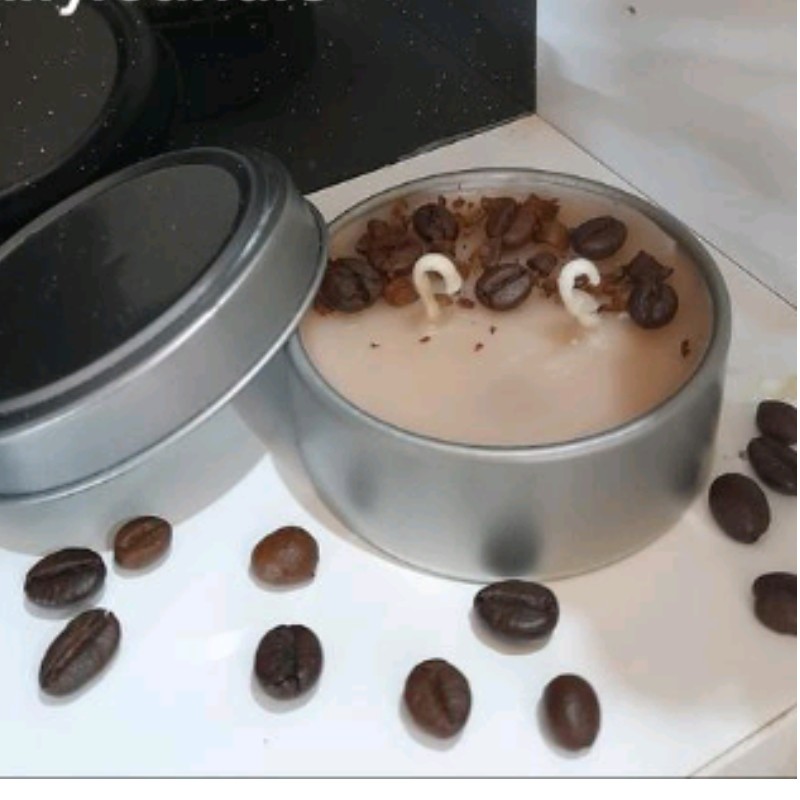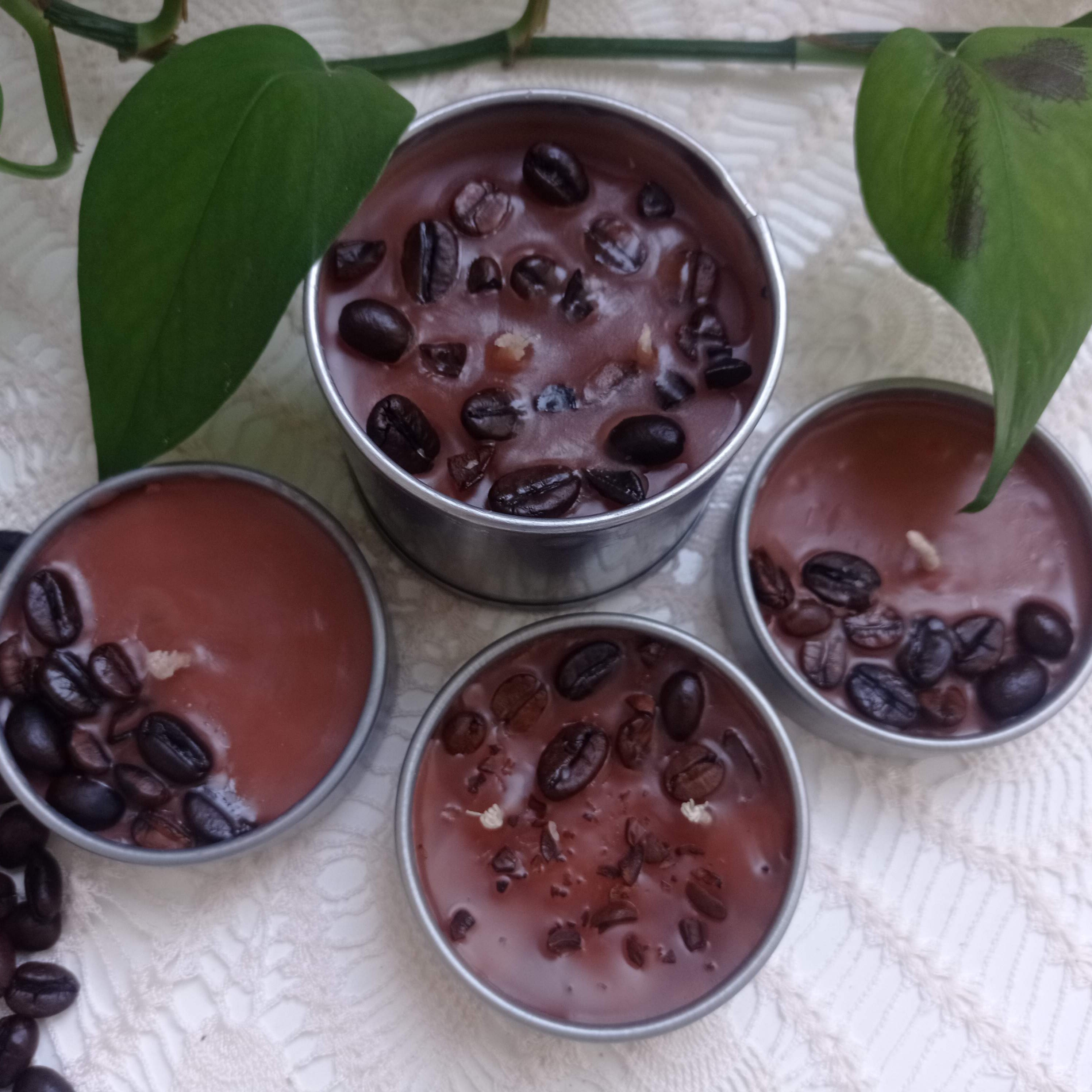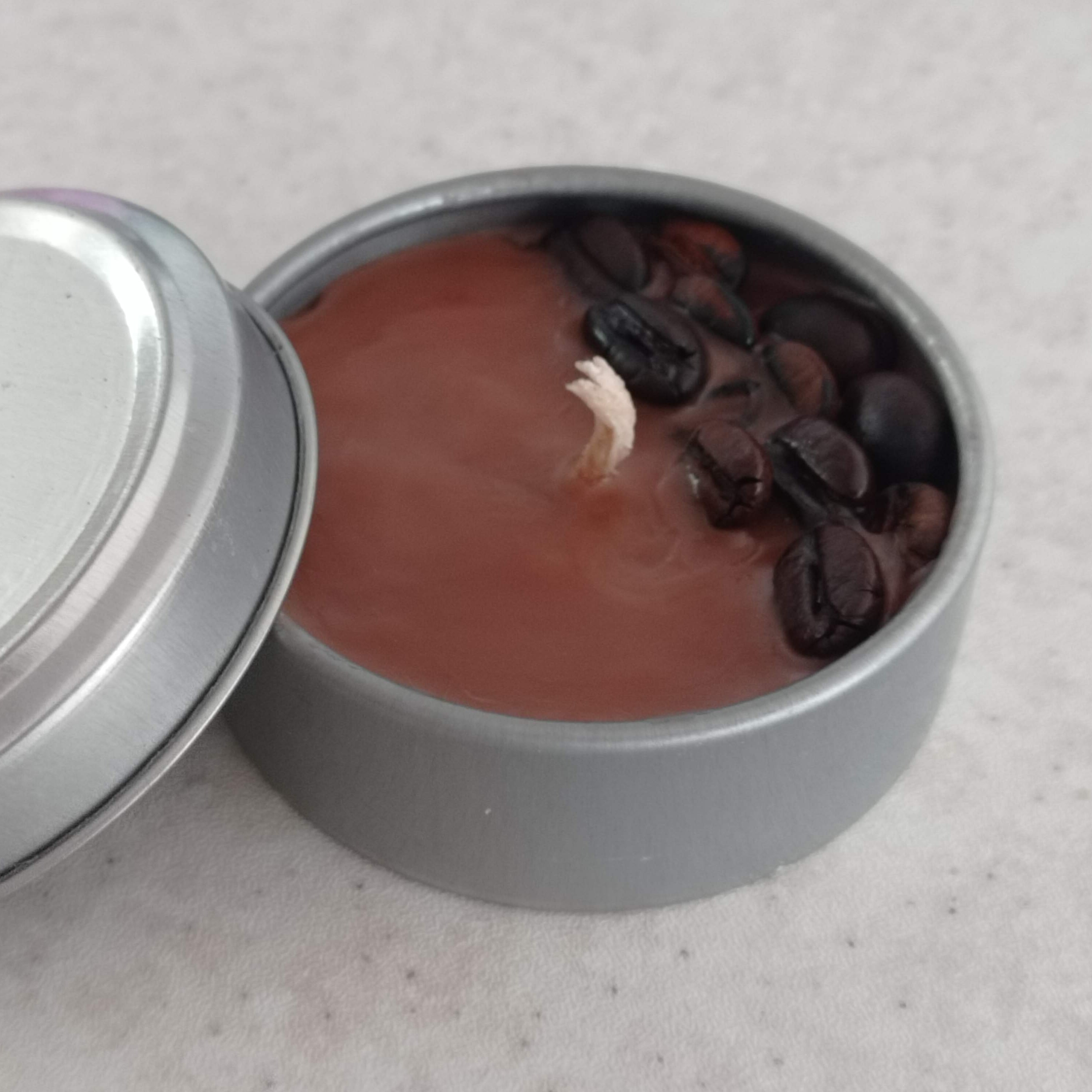 شمع قوطی فلزی با رایحه دلنشین قهوه و دانه های طبیعی قهوه.