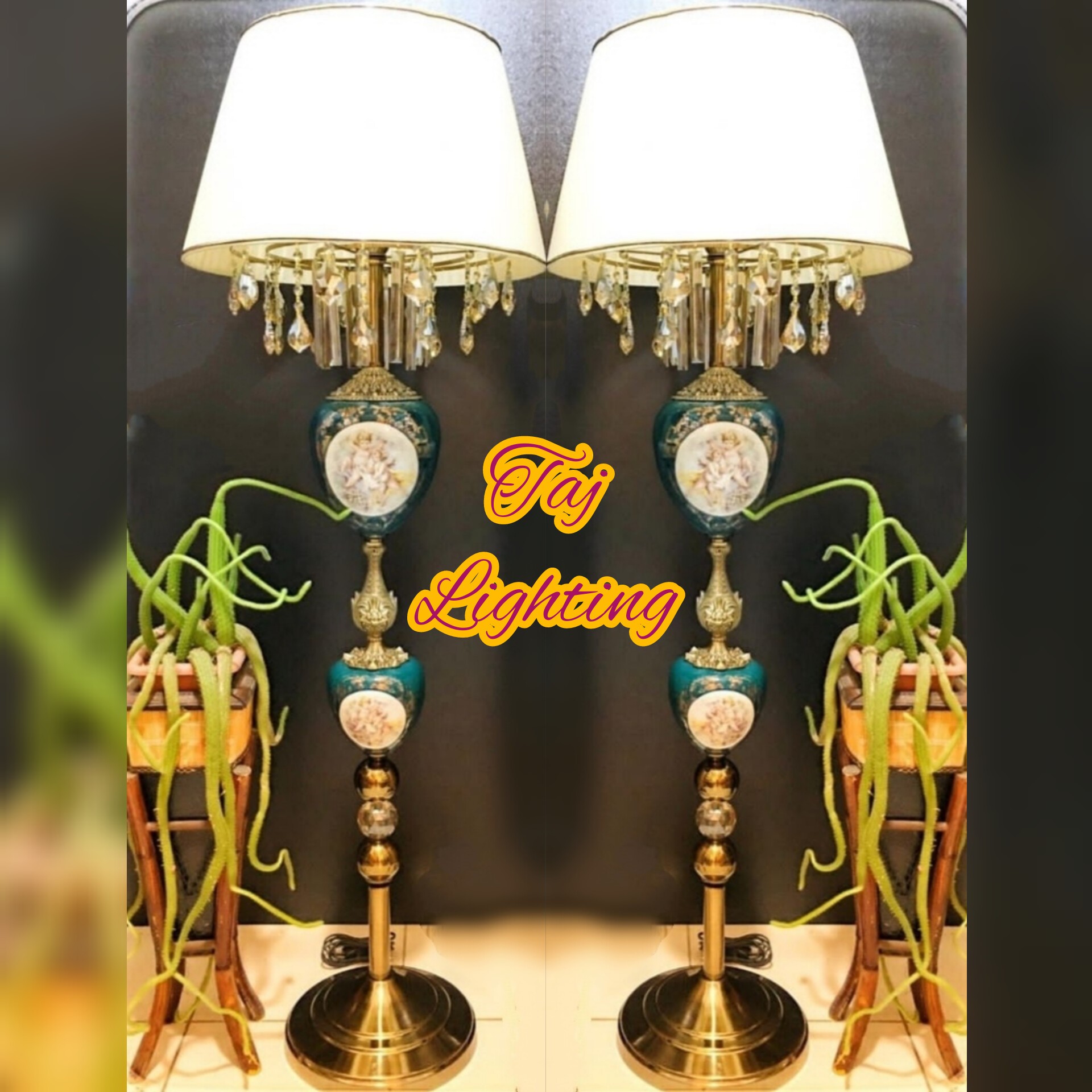 💥قیمت درج شده ، قیمت هر عددآباژور می باشد جنس وسط تنه :چینی رنگ بندی وسط تنه : سبز / زرشکی / سورمه ای / سفید / فیروزهای رنگ شید: کِرِم جنس پایه و لوله فلزی با آبکاری آنتیک جنس سوراهی آلیاژ جنس آویز ها کریستال