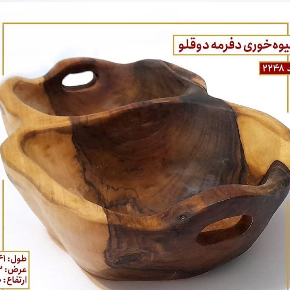 میوه خوری چوبی طرح دفرمه دوقلو کاملا کاردست ویک تکه کارشده قابل سفارش از چوب گردو وملج