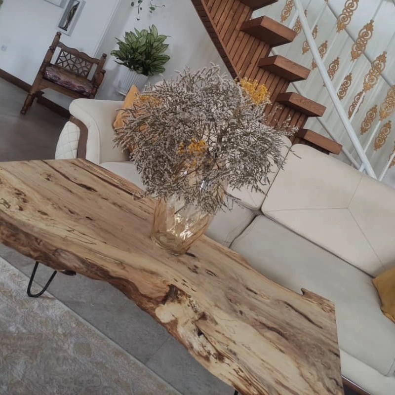 میز جلو مبلی روستیک چوب ممرز با پایه سنجاقی و پوشش داده شده با روغن گیاهی همل بسیار خوش نقش طول : ۱ بیشینه :۶۶ کمینه :۴۸ ضخامت :۶