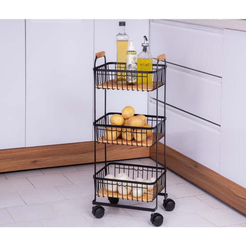 سبد سیب زمینی و پیاز سه طبقه شاینینگ نه تنها برای نگهداری سیب زمینی و پیاز مناسب است بلکه فضای آشپزخانه شما را زیبا خواهد کرد. این محصول را به لطف پایه های چرخ دار می توانید به راحتی جابجا کنید. یکی دیگر از ویژگی این سبد این است که هوای کافی در این سبد در جریان است، فرآیند فاسد شدن موادغذایی دیرتر صورت میگیرد. در کنار کاربردی بودن این محصول، بهدلیل طراحی زیبایی که دارد باعث ایجاد جلوهای خاص در آشپزخانه خواهد شد.