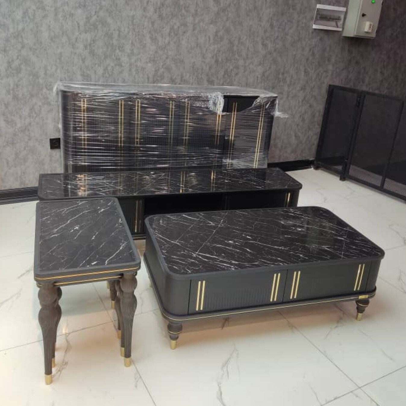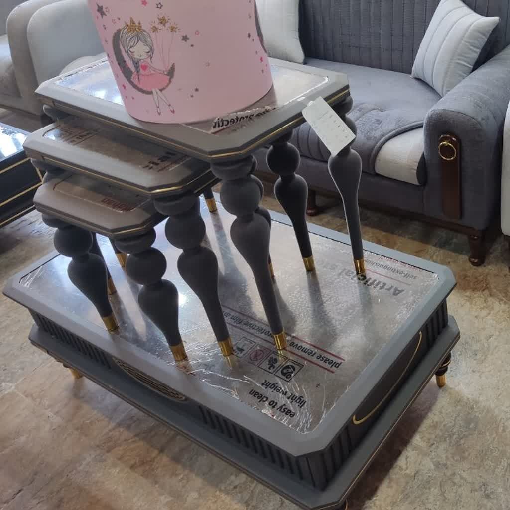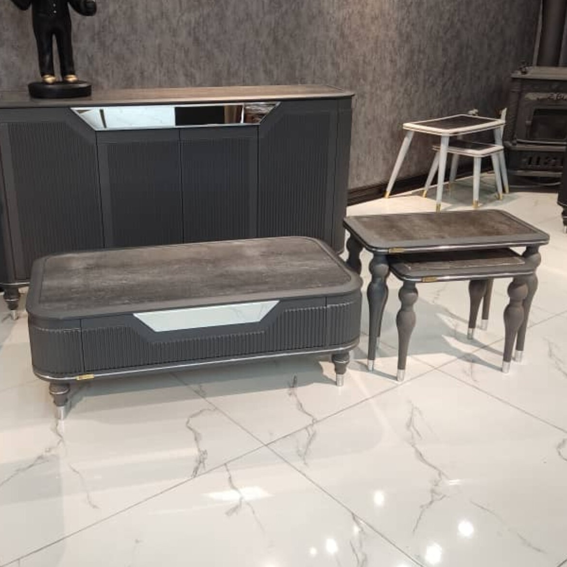 میز چلومبلی طوسی رنگ ،همراه با دوتا میز عسلی ،شرکتی بادوام و با کیفیت کشو دار ❤بالاتر از این کیفیت وجود نداره