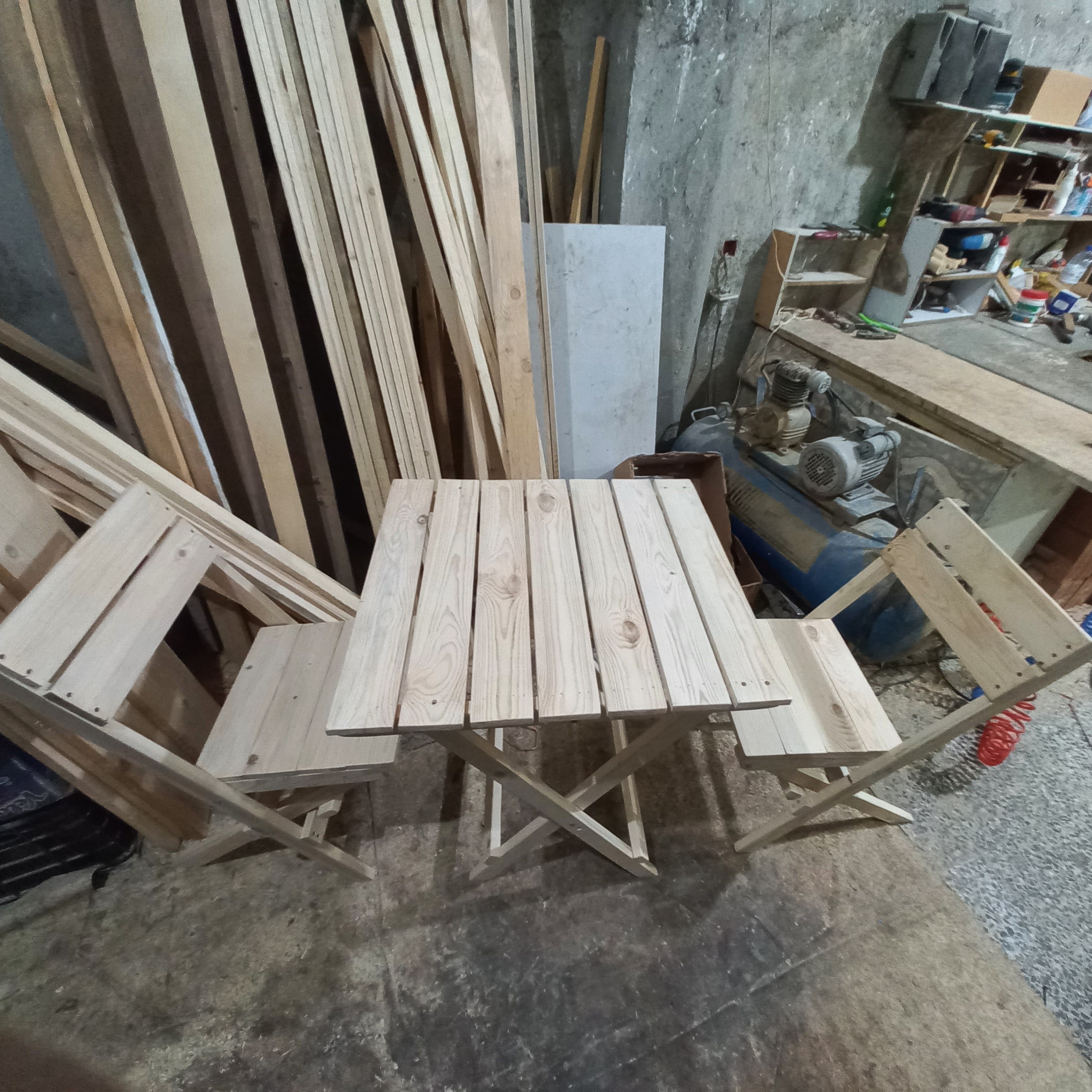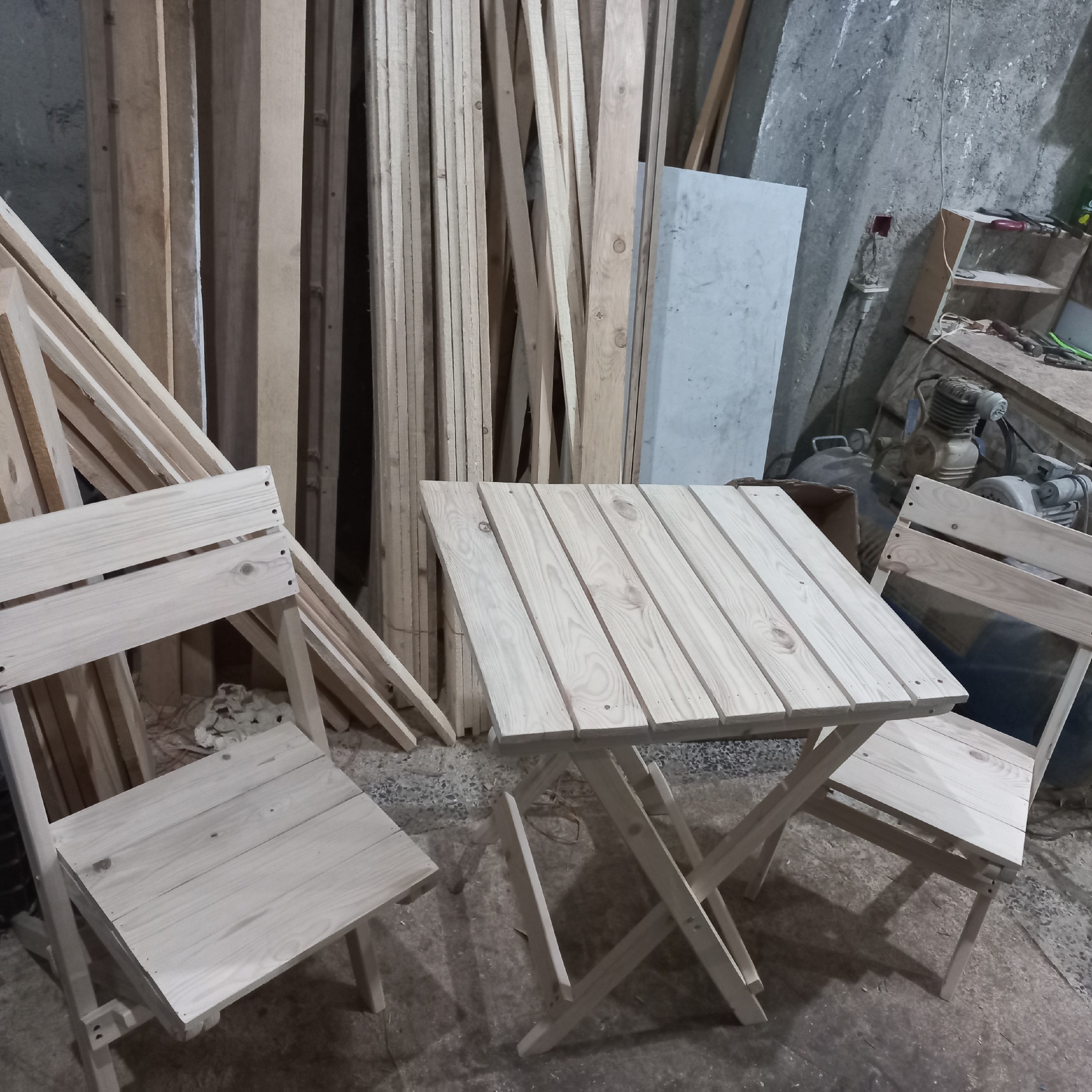 میز و صندلی تاشو چوبی ۲ نفره سایز میز و صندلی کاملا استاندارد نشیمن صندلی۳۵×۳۷ ارتفاع صندلی ۸۰ فاصله تا نشیمن ۴۵سانت ارتفاع میز ۷۵ سانت روی میز ۶۲×۶۹سانت بسیار محکم با چوب نراد روس رنگ قهوه ای تیره و روشن و رنگ چوب