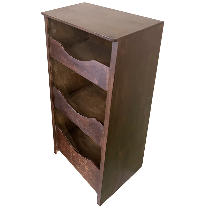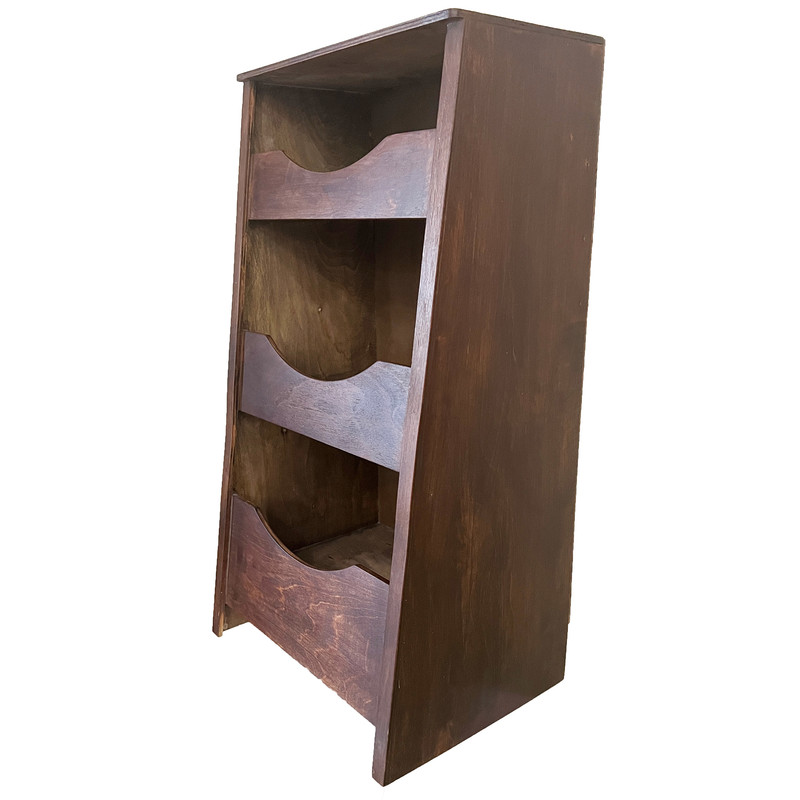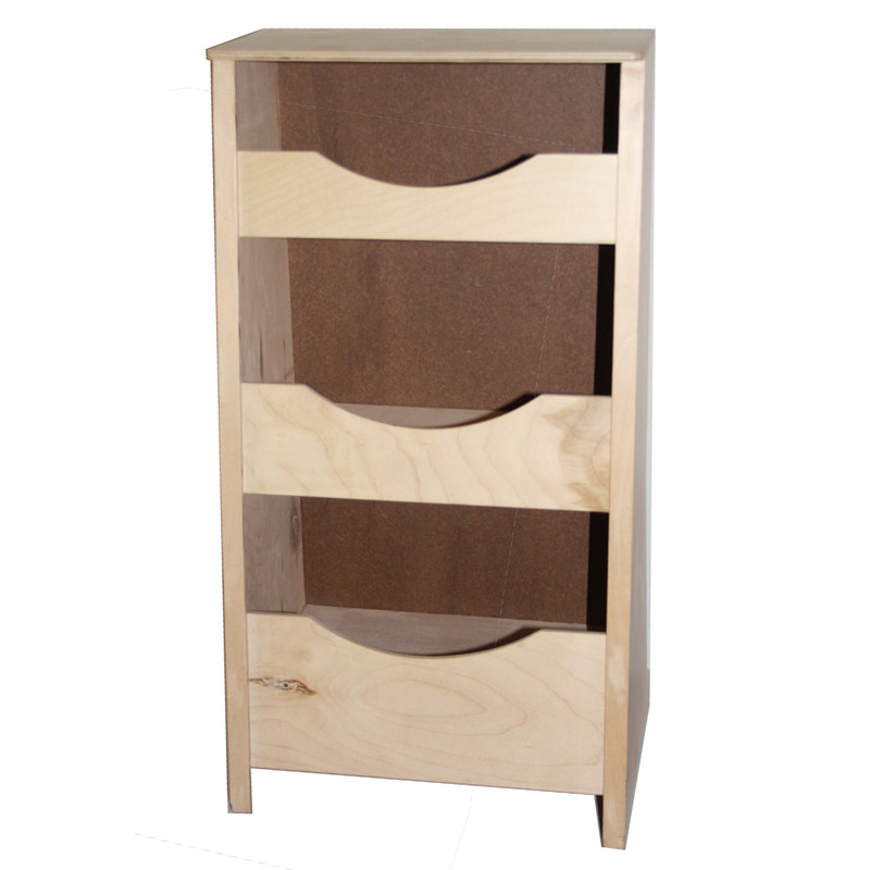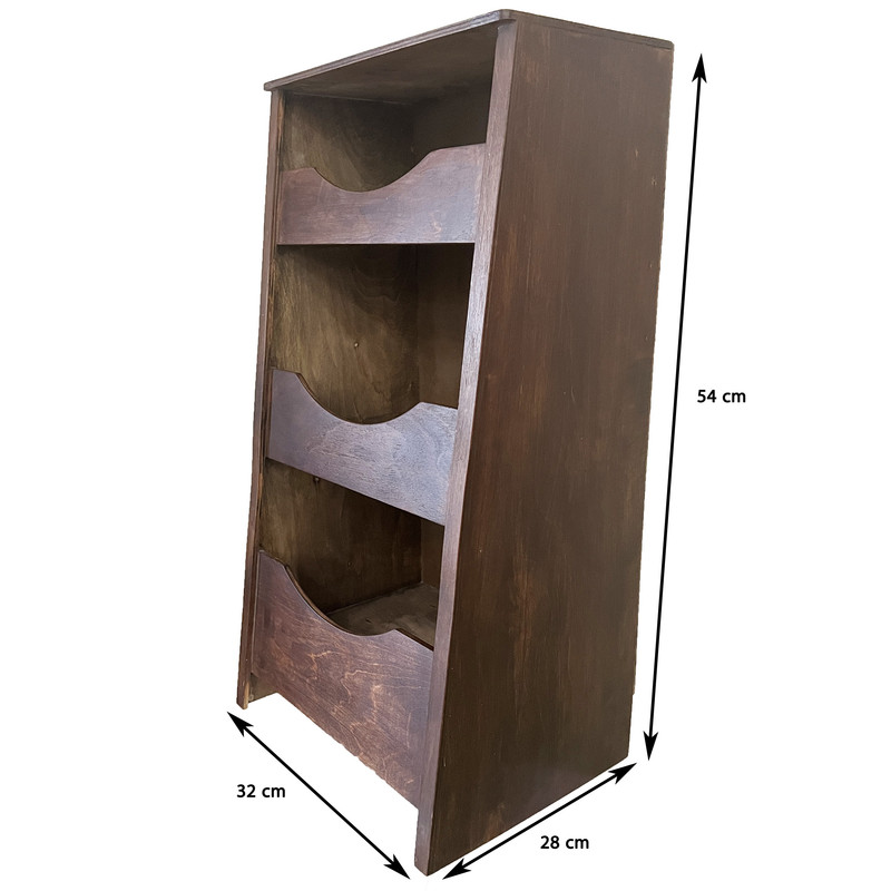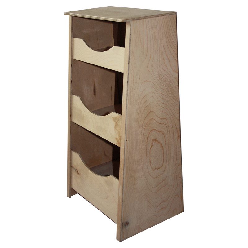 سبد سه طبقه چوبی برای نگهداری سیفی جات و سیب زمینی و پیاز میباشد جنس بدنه و صفحه این سبداز چوب طبیعی و چند لایه فرآوری شده خارجی ساخته شده است که از چوب درختانی مانند راش افرا وامثال آن تشکیل شده است این نوع چوبها متراکمتر و محکم تر هستن و به آسانی دچار خط و خش نمیشوند این نوع چوب بر عکس چوبهای ن یا کاج که به چوب روسی یا فنلاندی معروف هستن نرم و پفکی نیستن و رنگ آمیزی بهتری دارند و به مرور زرد نمیشوند همچنین مزیت چوب طبیعی نسبت به چوبهای مصنوعی (ام دی اف ) و سایر مواد مصنوعی سبکی و زیبایی و بدیع بودن نقوش آن است که باعث ایجاد پیوند با طبیعت و ایجاد حس آرامش در بیننده میشود چوب طبیعی دارای تنوع نقش است وبازی رنگ در آن زیاد است و هیچیک از محصولات مشابه هم نیستند که هنگام انتخاب باید به آن توجه داشت از دیگر مزیت چوبهای چند لایه سبکی و استحکام آن است که امکان نشستن روی آن برای کوتاه مدت فراهم میشود بدلیل نوع طراحی این محصول محل نگهداری پیاز و .. محفوظ میباشد و از پراکندگی پوست و ... جلوگیری مینماید